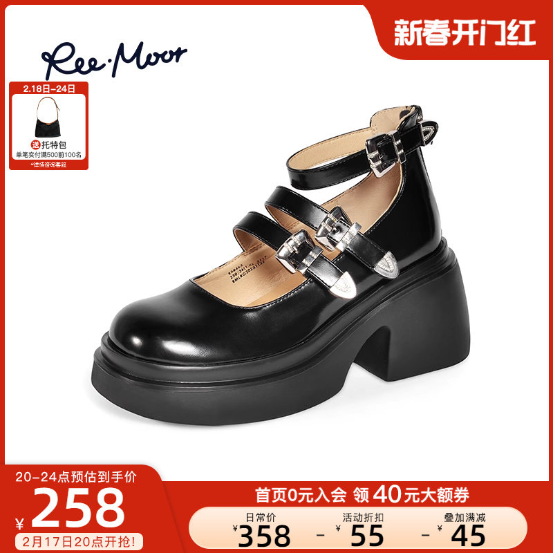 REEMOOR睿慕2024年春夏新款舒适厚底玛丽珍粗跟单鞋法式乐福鞋女