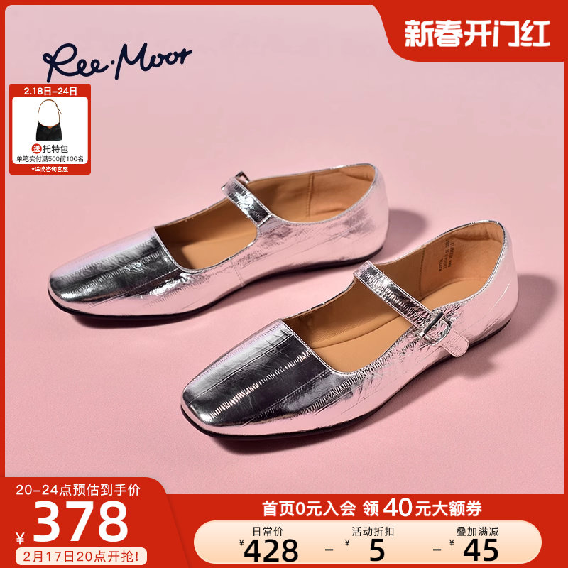REEMOOR睿慕2024春季新款气质银色玛丽珍平底真皮羊皮软底单鞋女