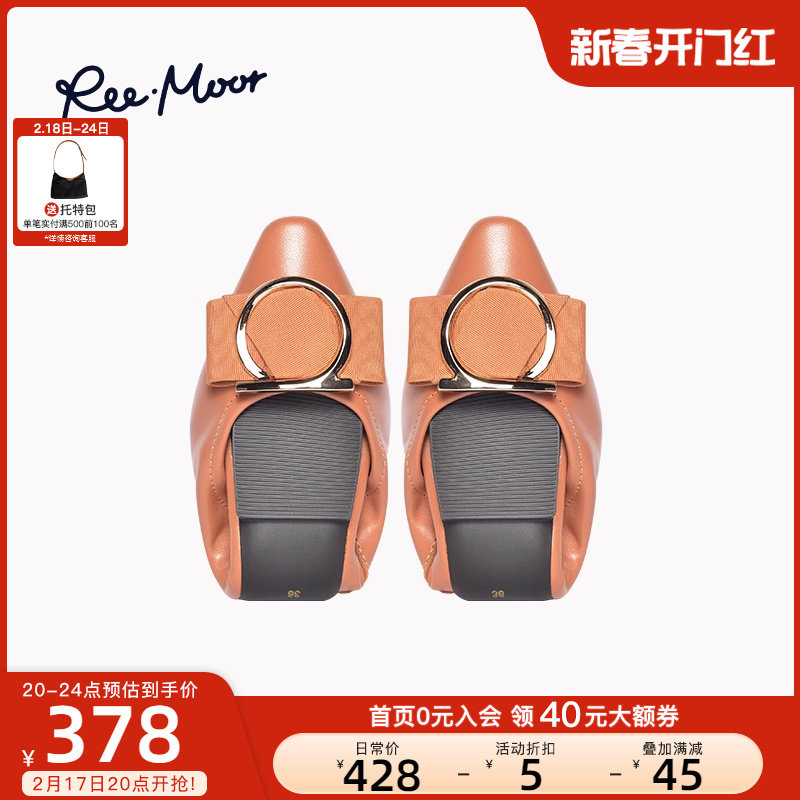 REEMOOR睿慕2024年春夏新款舒适软底浅口单鞋蝴蝶结羊皮蛋卷鞋女