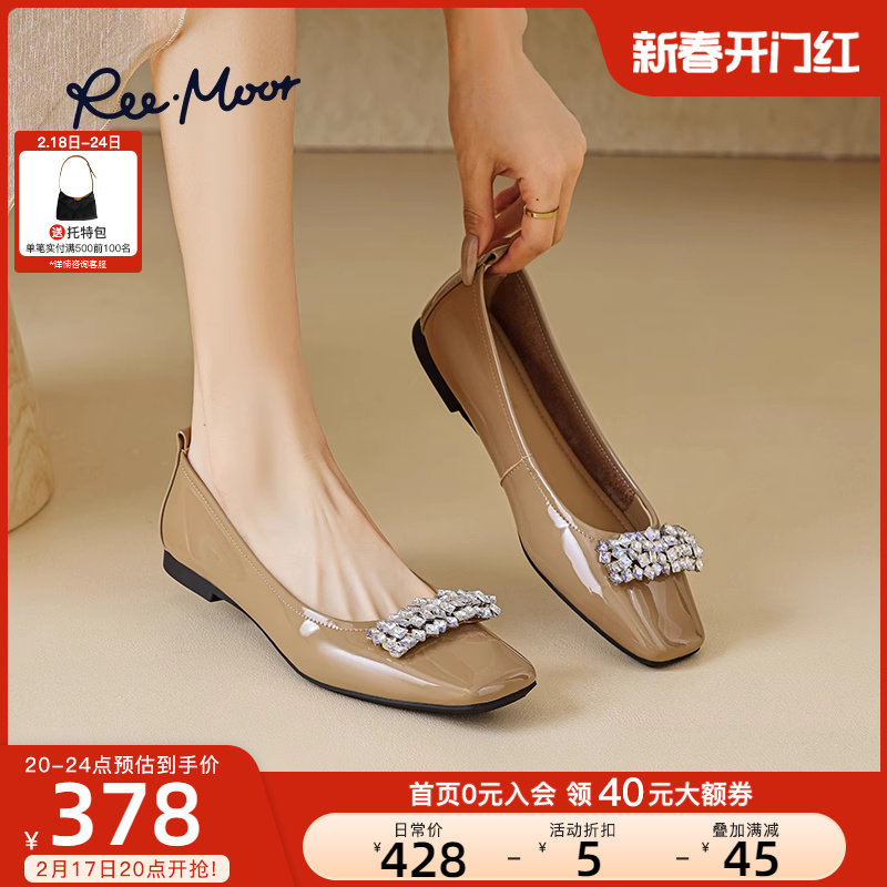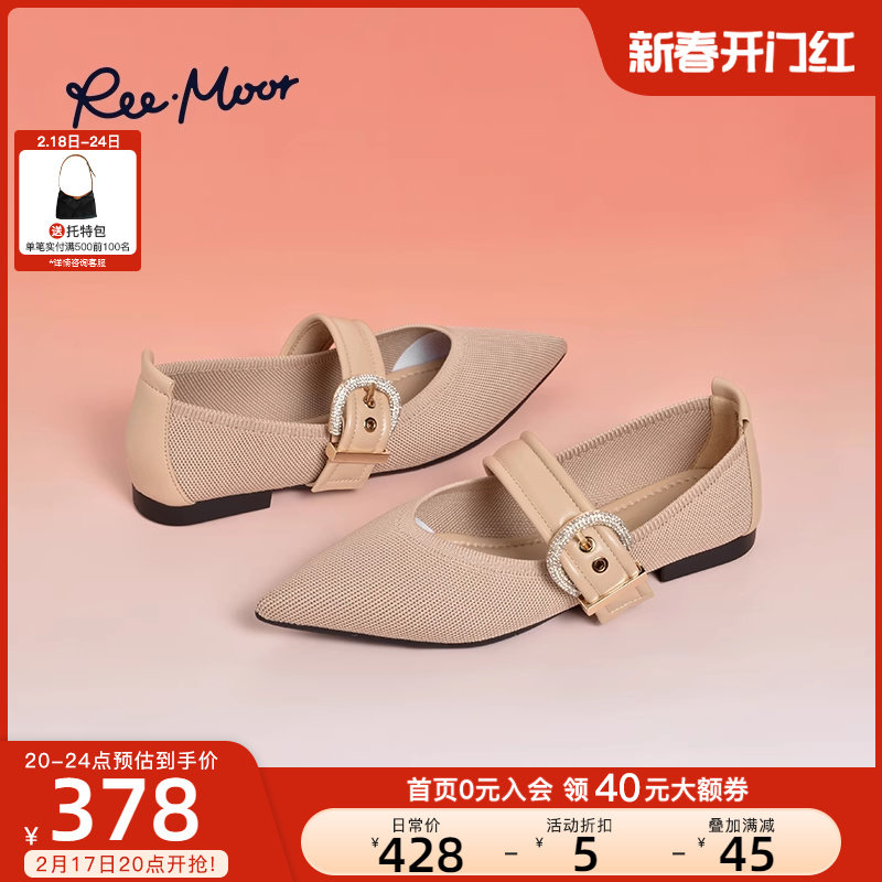 REEMOOR睿慕2024年春新款水钻方扣平底浅口单鞋女软底尖头蛋卷鞋