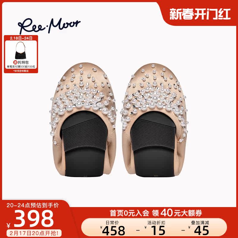 REEMOOR睿慕2024春季水钻尖头浅口平底鞋舒适软底时尚百搭单鞋女