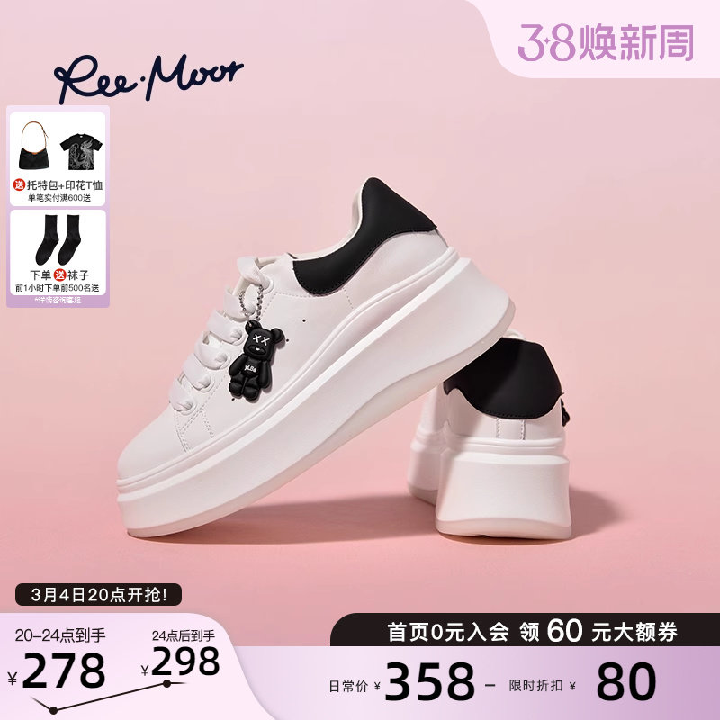 REEMOOR睿慕2024春新款百搭厚底增高小熊小白鞋运动鞋休闲板鞋女