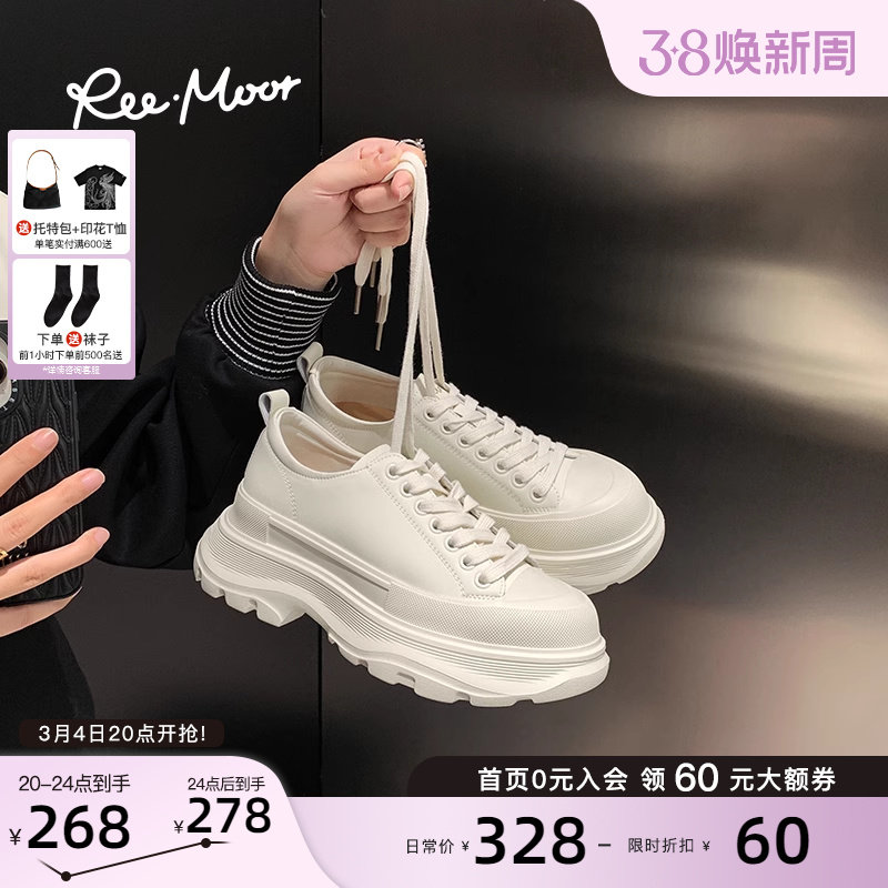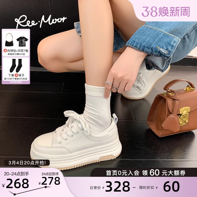 REEMOOR睿慕2024春季简约小白鞋厚底增高休闲百搭运动鞋板鞋女鞋