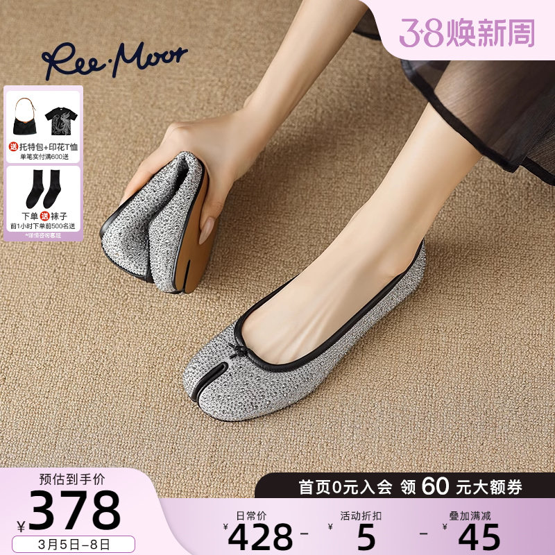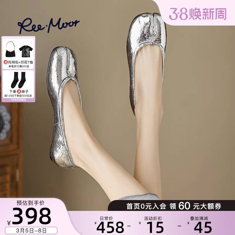 REEMOOR睿慕2024春季新款浅口芭蕾鞋豆豆鞋分趾鞋猪蹄鞋平底鞋女