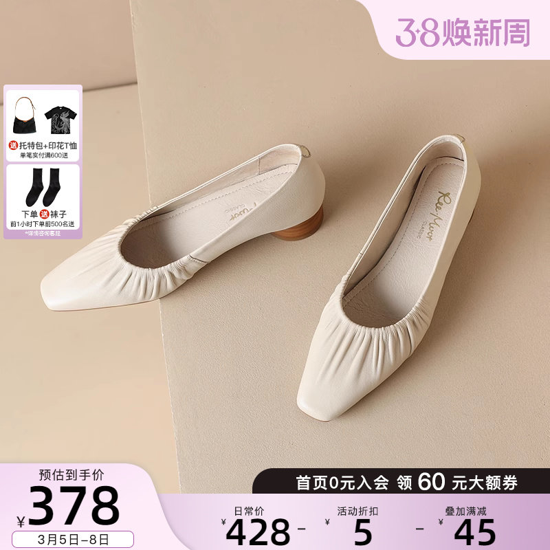 REEMOOR睿慕2024春季新款法式羊皮温柔晚晚鞋中跟玛丽珍豆豆鞋女