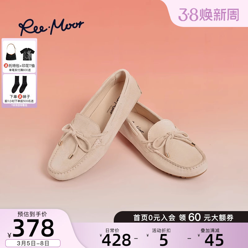 REEMOOR睿慕2024年春新款绒面舒适百搭豆豆鞋平底乐福鞋一脚蹬女