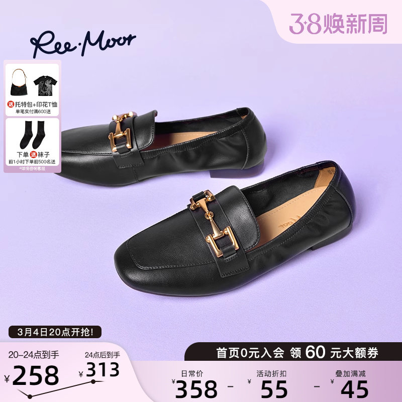 REEMOOR睿慕24新款商场同款真皮一脚蹬乐福鞋平底豆豆单鞋小皮鞋