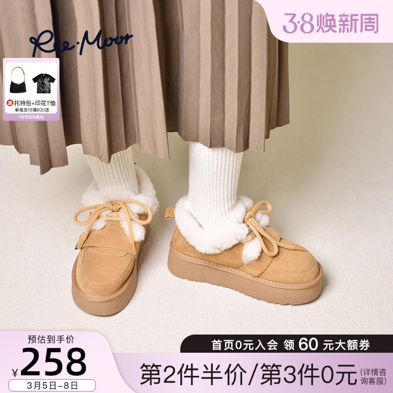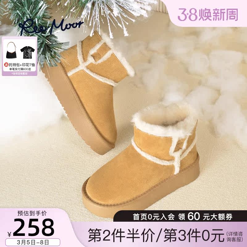 REEMOOR睿慕冬季新款短筒加厚加绒雪地靴毛毛鞋女保暖棉鞋