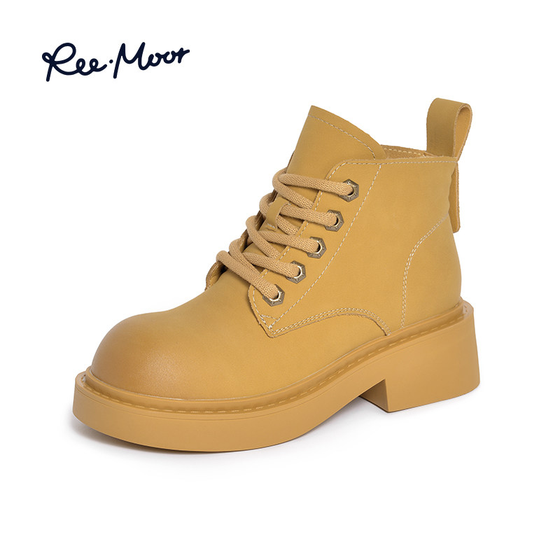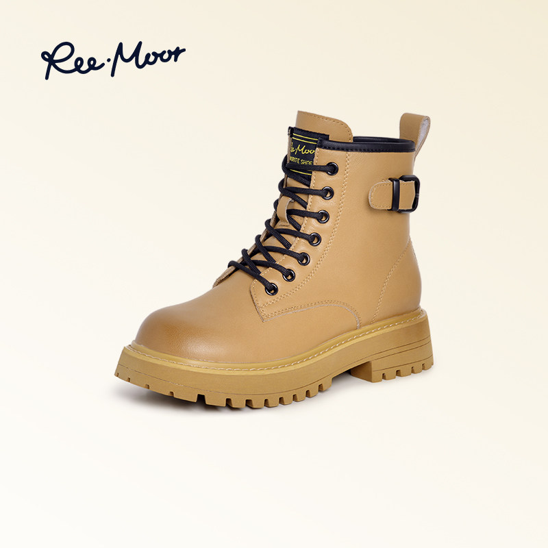 REEMOOR睿慕2023秋新增高大黄靴马丁靴英伦风踢不烂厚底女中筒靴