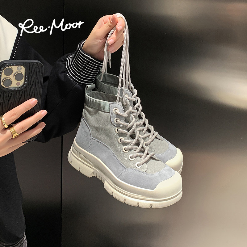 REEMOOR睿慕帆布马丁靴2023秋季新款厚底增高靴子休闲百搭短靴女