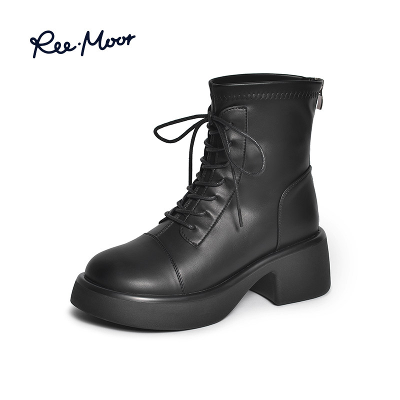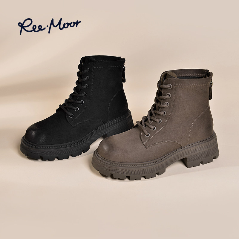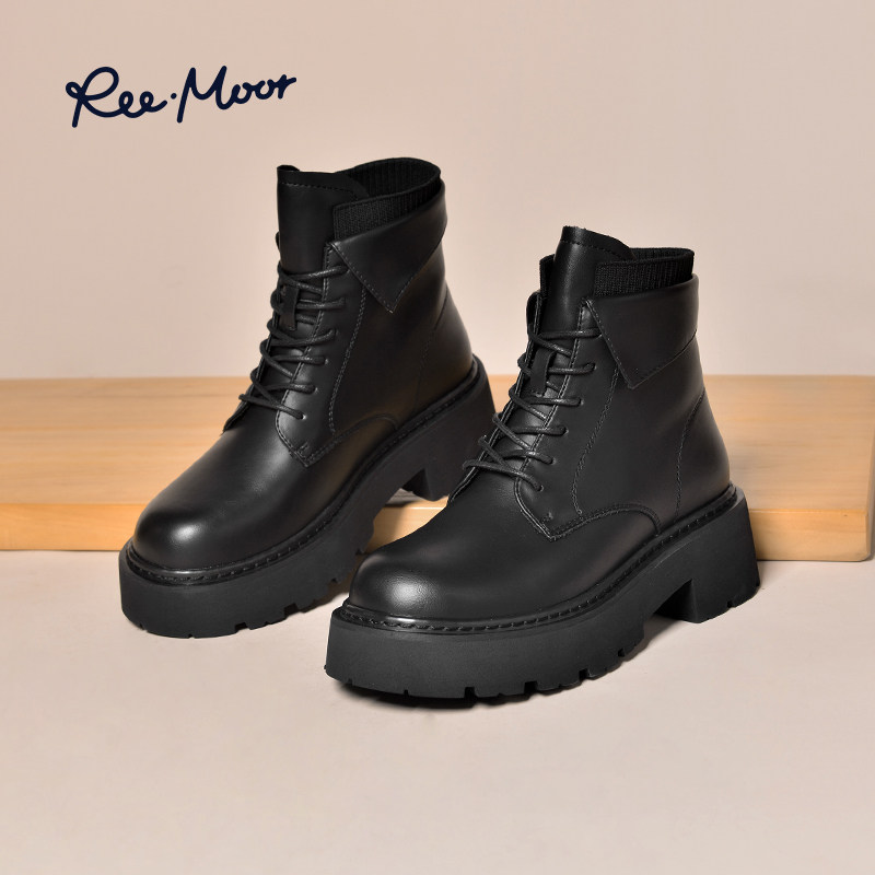 REEMOOR睿慕气质马丁靴2023冬季新款厚底显高显瘦短筒圆头短靴女