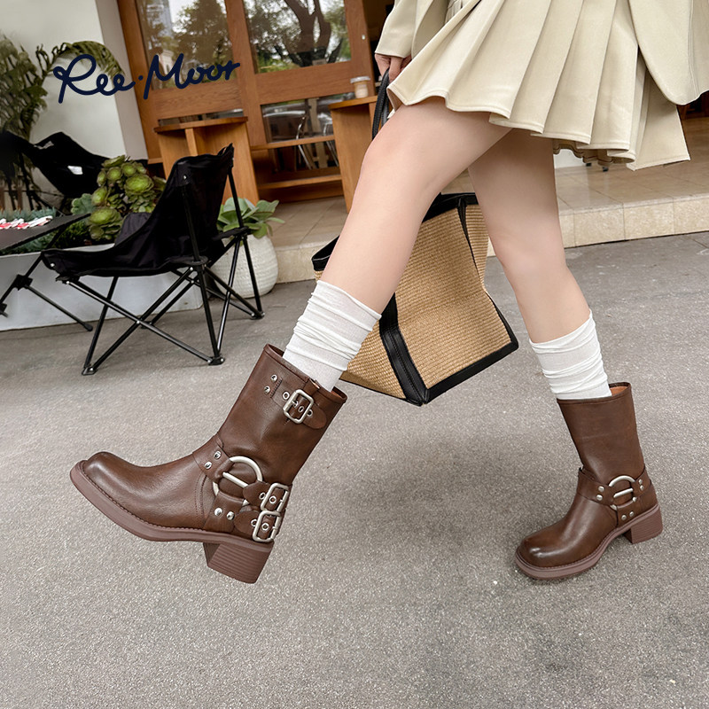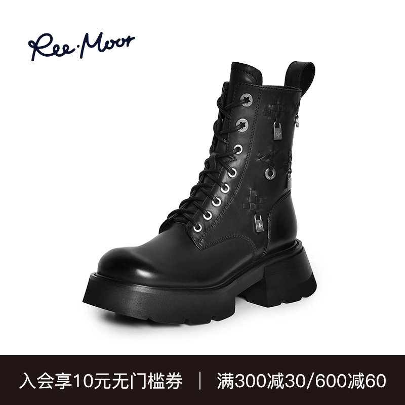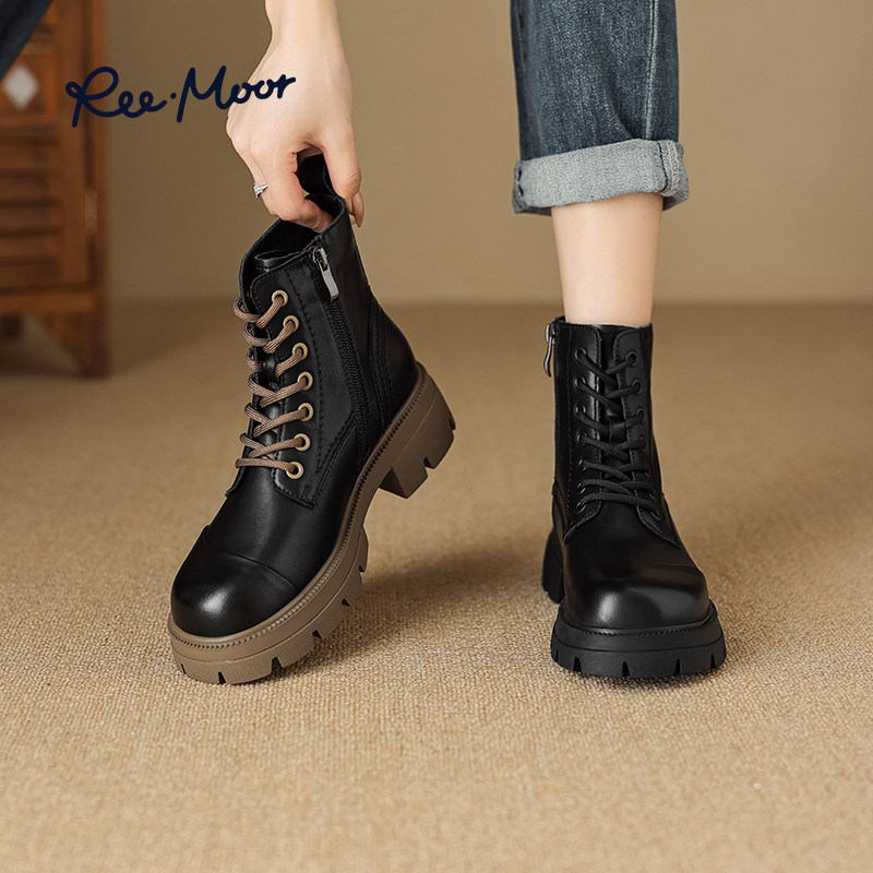 reemoor睿慕炸街马丁靴2023年秋冬新款牛皮粗跟厚底英伦风短靴女