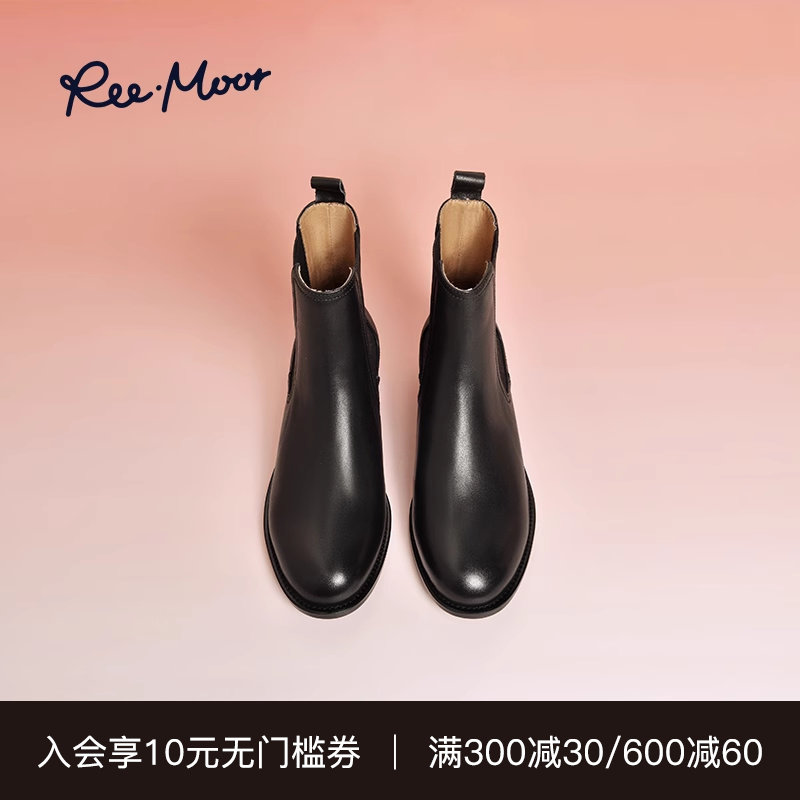 REEMOOR睿慕24新款厚底黑色切尔西粗跟增高马丁靴烟筒短靴女