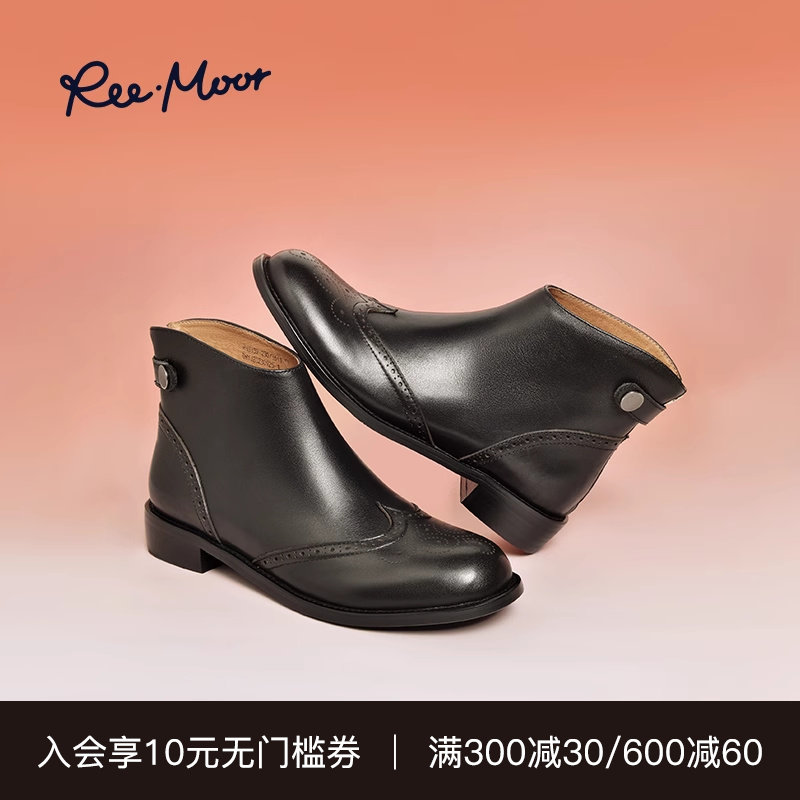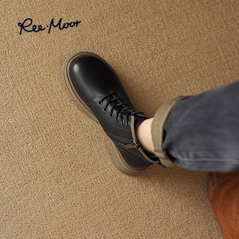 REEMOOR睿慕冬新款气质复古真皮马丁靴英伦风软皮圆头短靴女