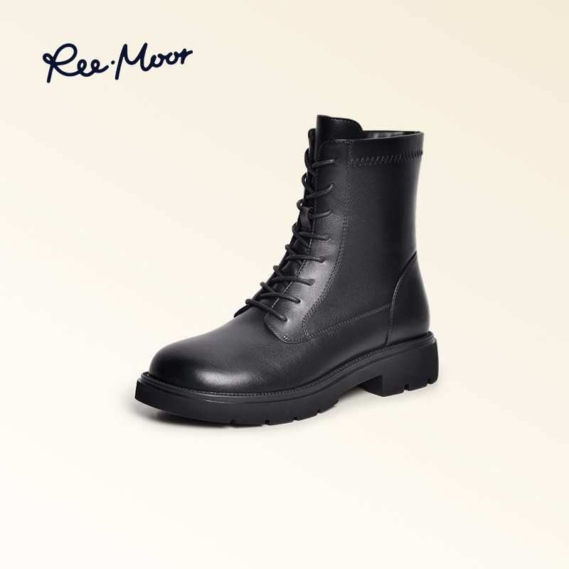 REEMOOR睿慕2023秋冬新款马丁靴女平底靴子绑带鞋休闲鞋子潮ins女