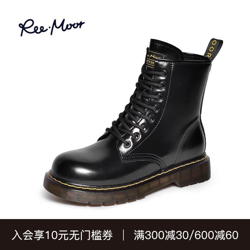 REEMOOR睿慕英伦风马丁靴2023秋冬新款经典薄款女厚底显腿长短靴