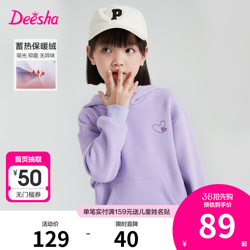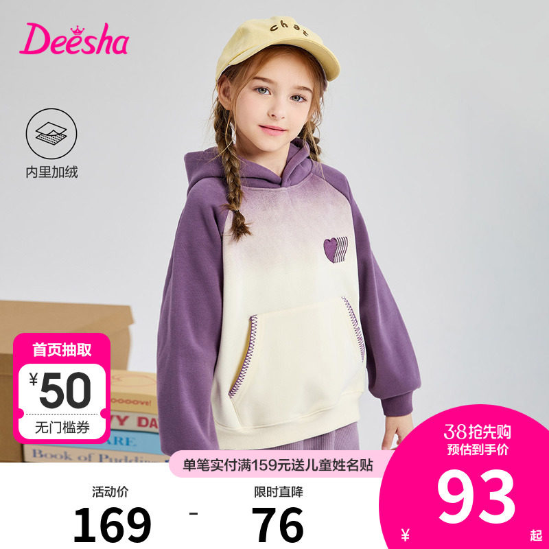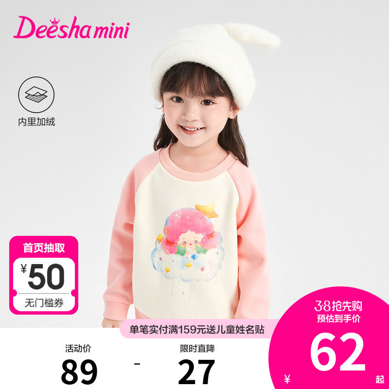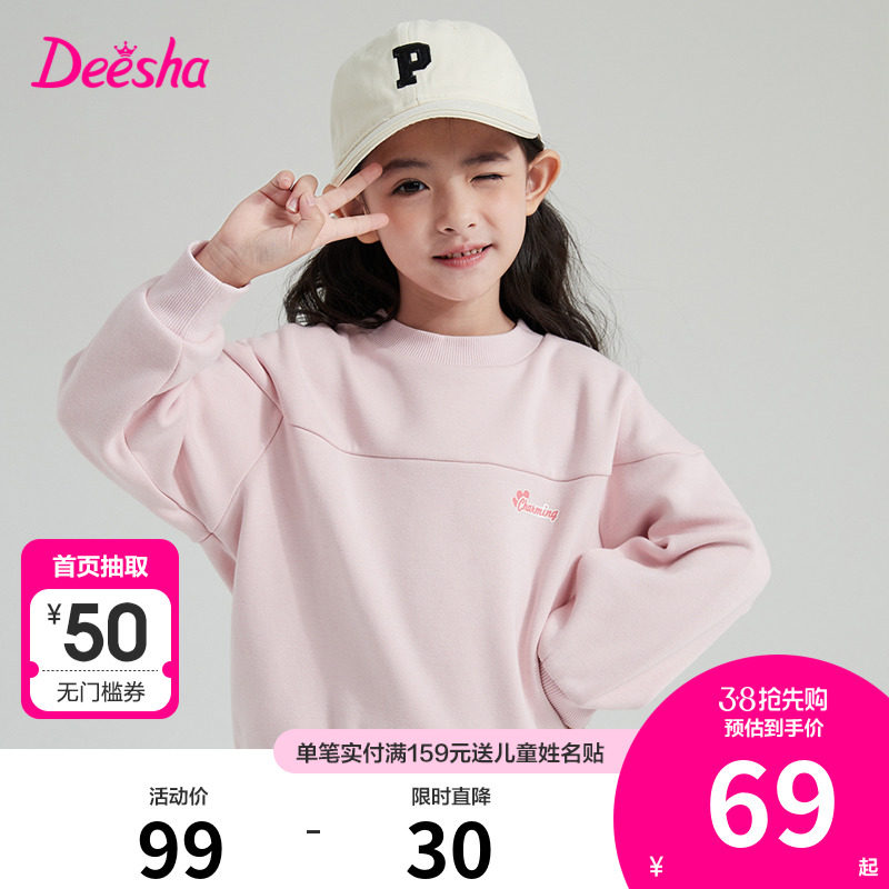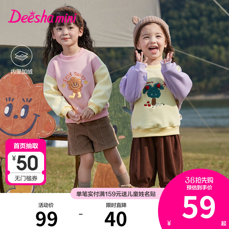 笛莎女童卫衣冬装新款加绒运动上衣女孩儿童宝宝绒衫迪莎官方童装