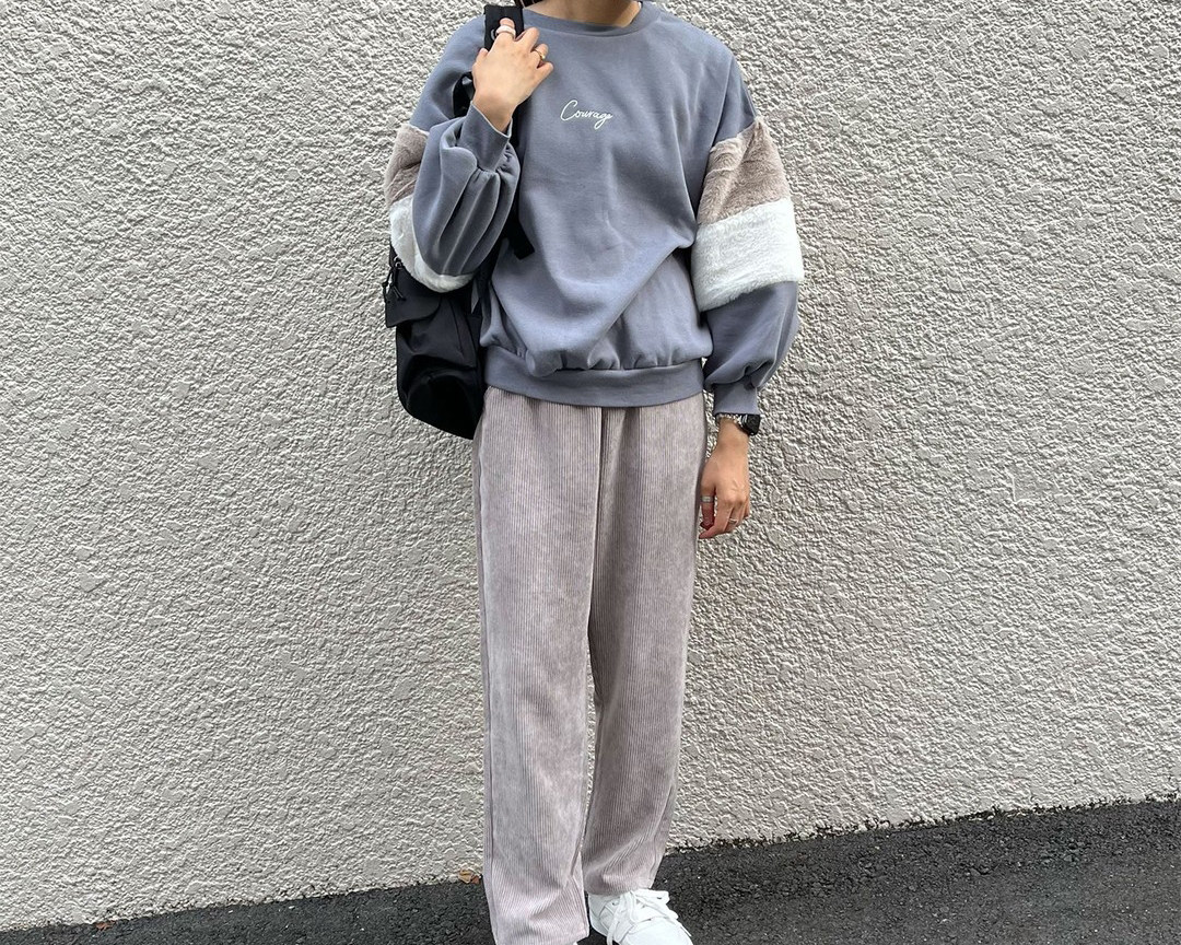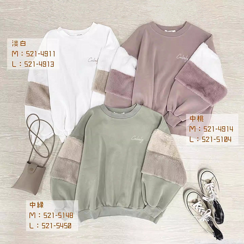 日单秋冬新款清新甜美百搭罗纹圆领毛毛拼接长袖卫衣绒衫女24632