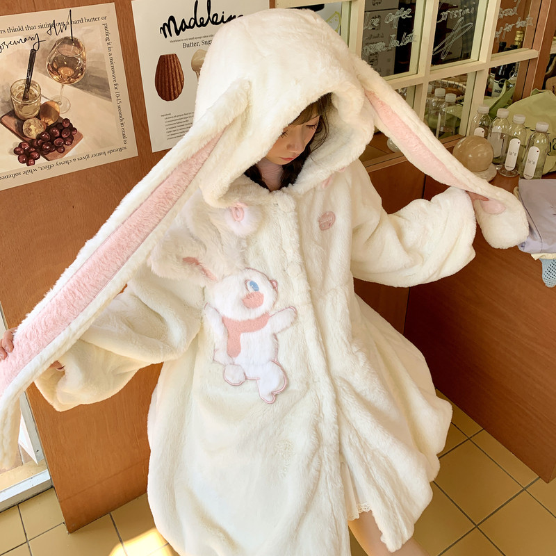森女部落原创可爱风萌趣大兔子卫衣绒衫秋冬款花苞外套中长款新款