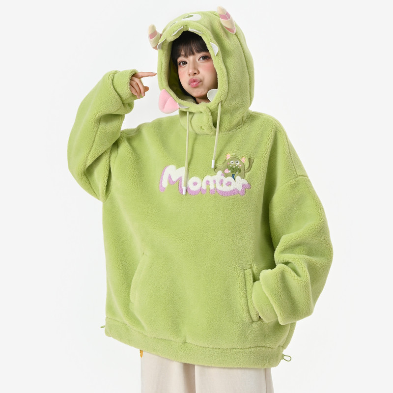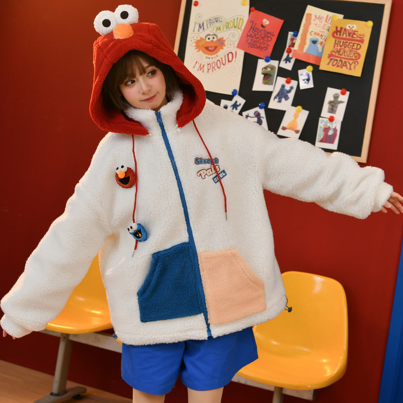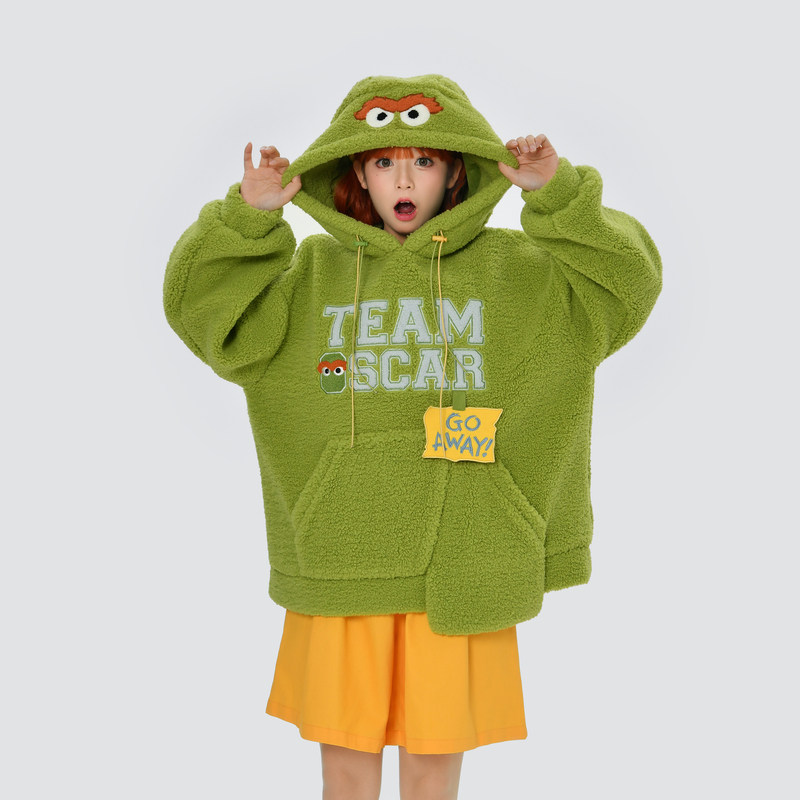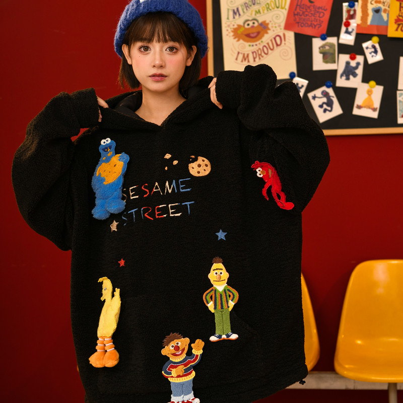 芝麻街联名森女部落原创可爱萌趣少女感绒衫套头连帽卫衣2023新款