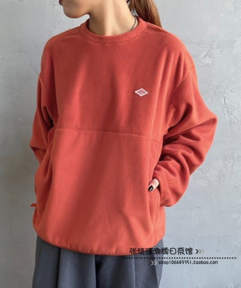 张晓沫日系23秋冬DAN前瓦片袖刺绣抓绒摇粒绒圆领卫衣套头绒衫女