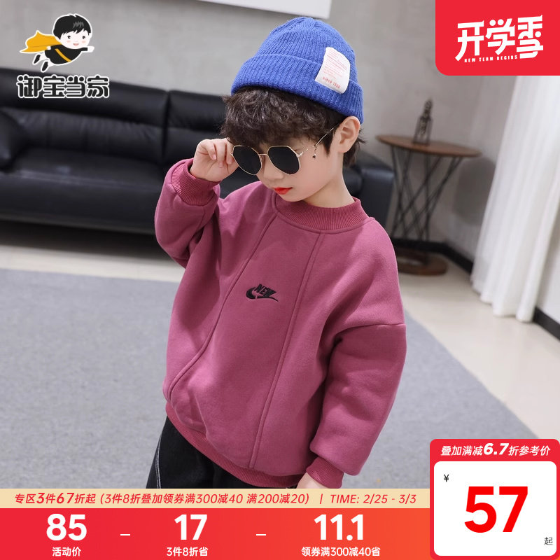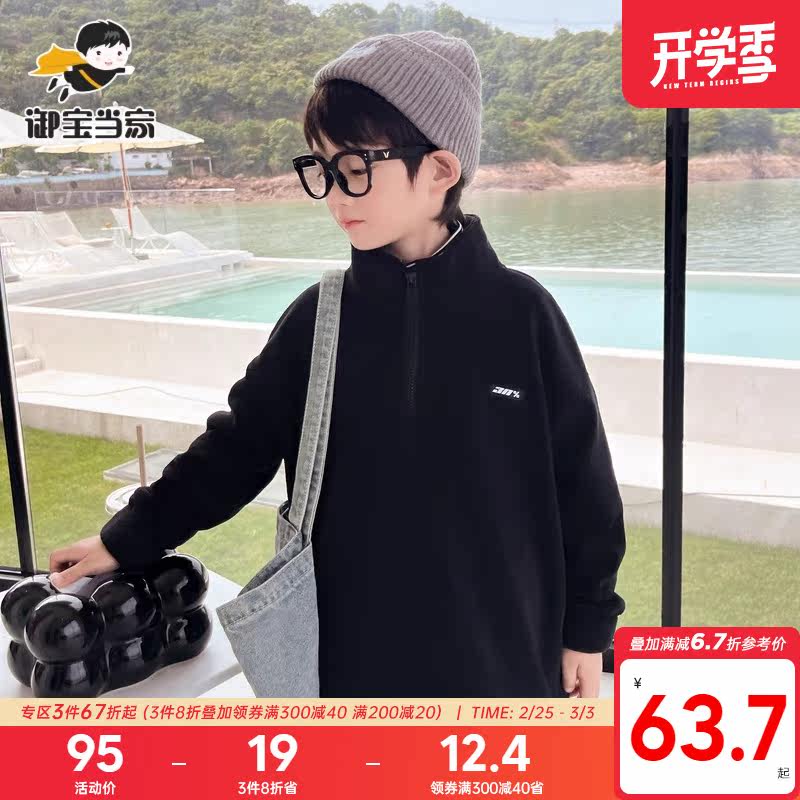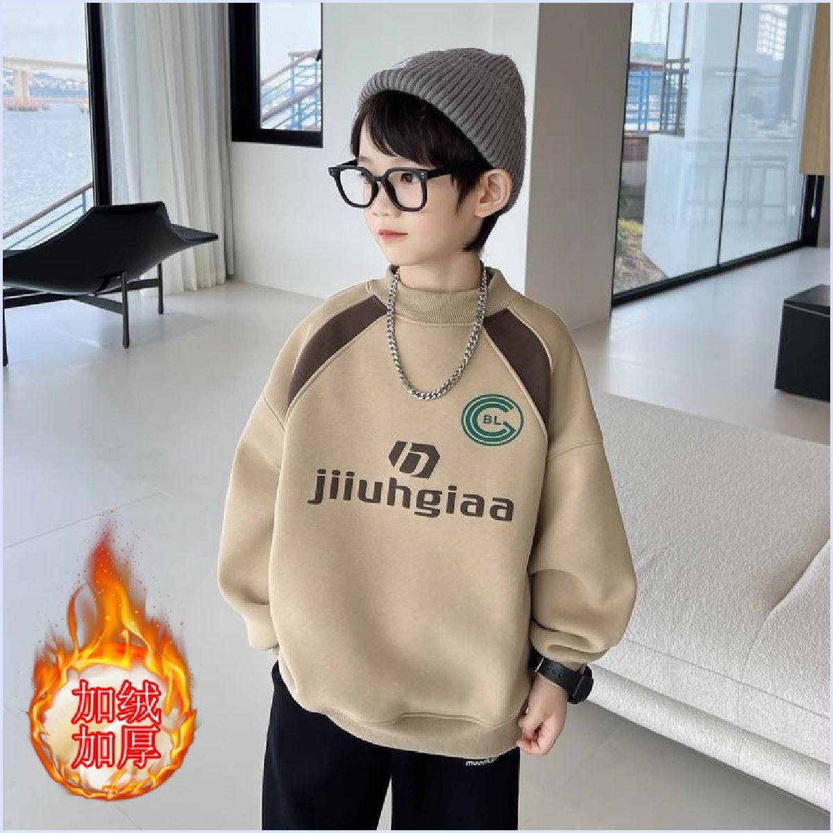 男童加绒卫衣秋冬装2024新款儿童半高领加厚绒衫童装男孩休闲上衣
