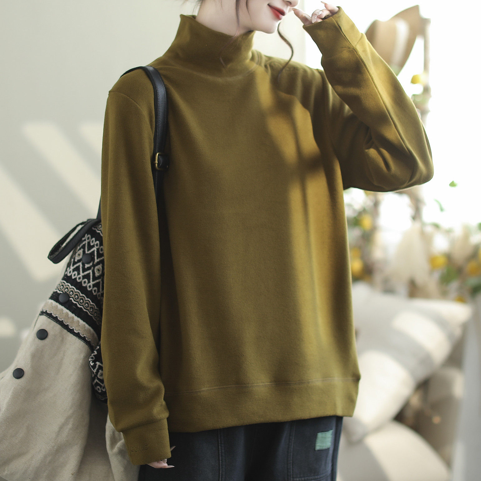 2023年秋冬新款半高领加绒卫衣女套头无帽宽松长袖厚上衣内搭绒衫