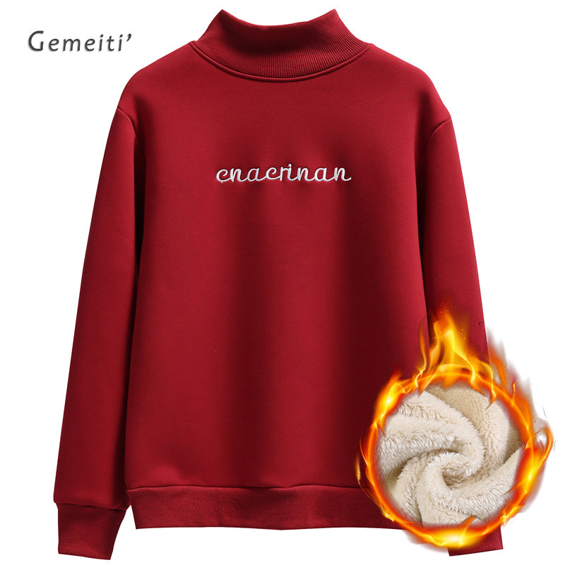 厚实保暖羊羔毛高领卫衣女秋冬新款加绒套头长袖无帽上衣打底绒衫