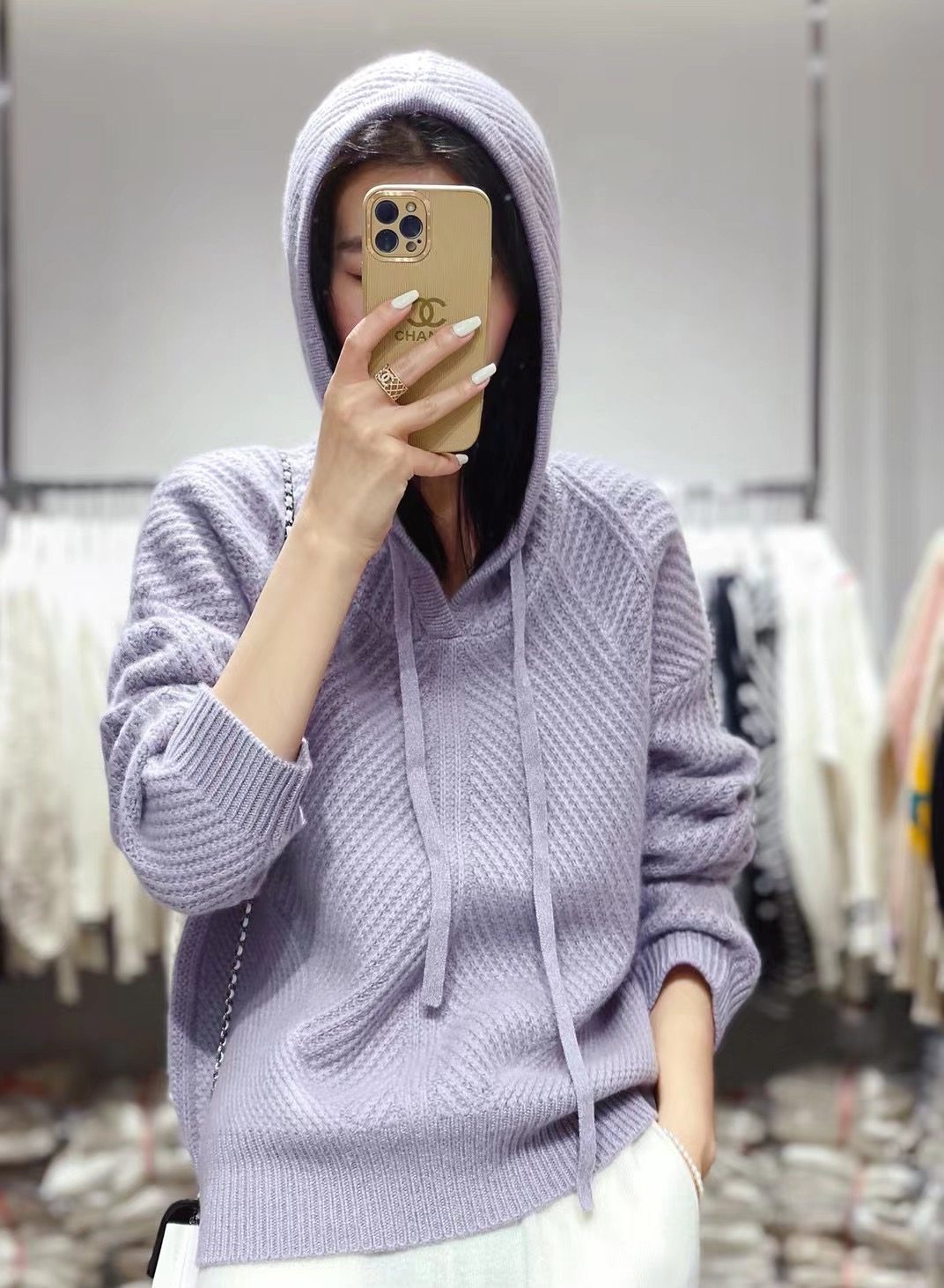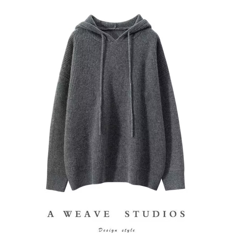 2023春秋新款100%纯羊绒帽衫女连帽针织毛衣宽松羊毛衫卫衣打底衫