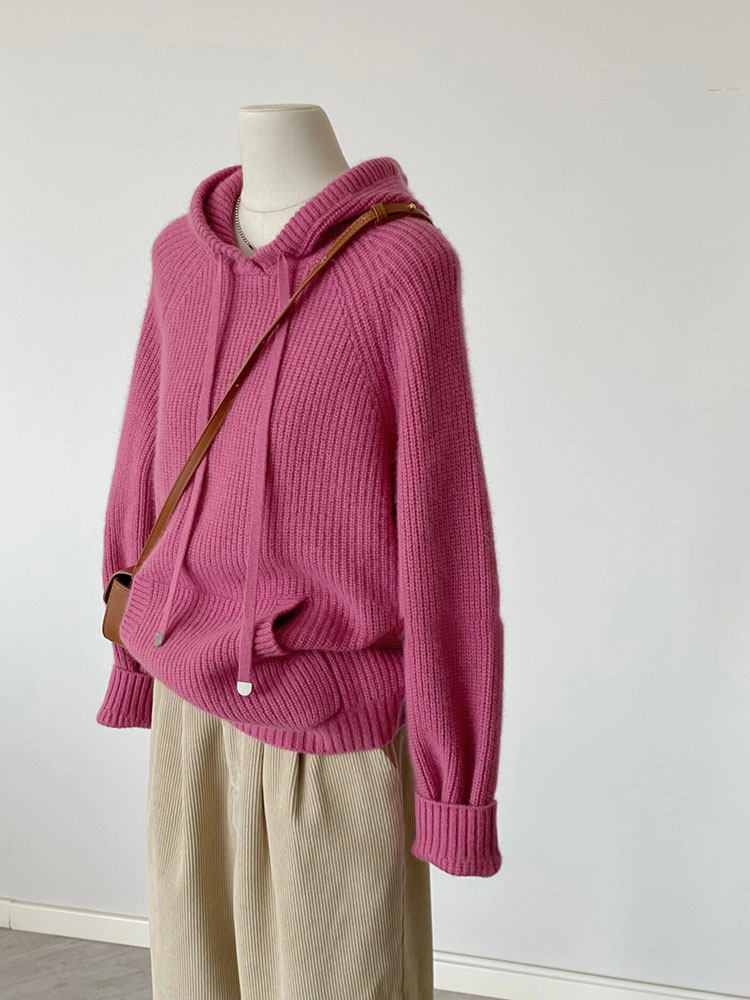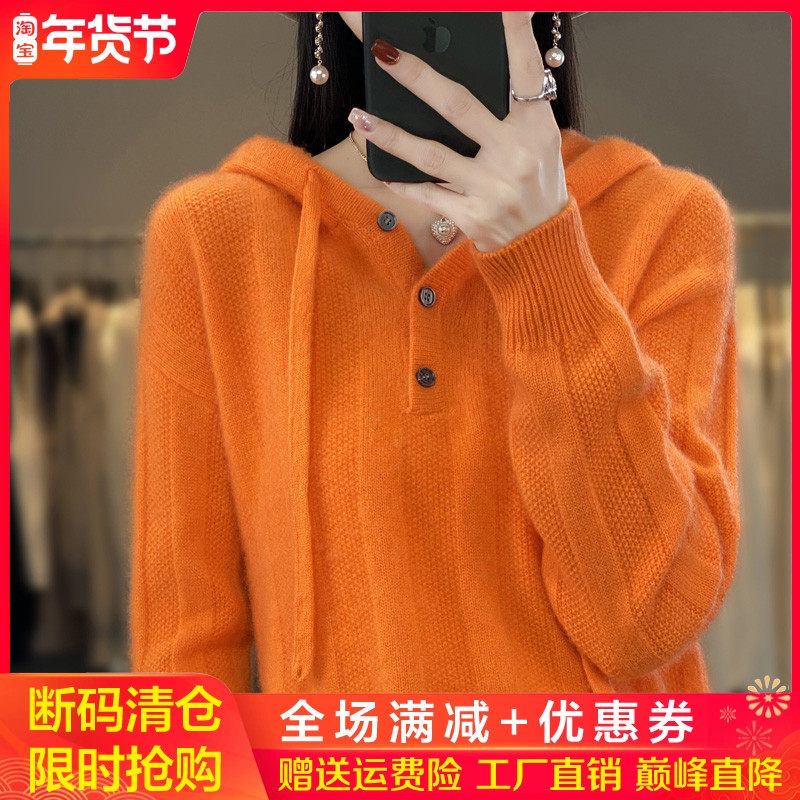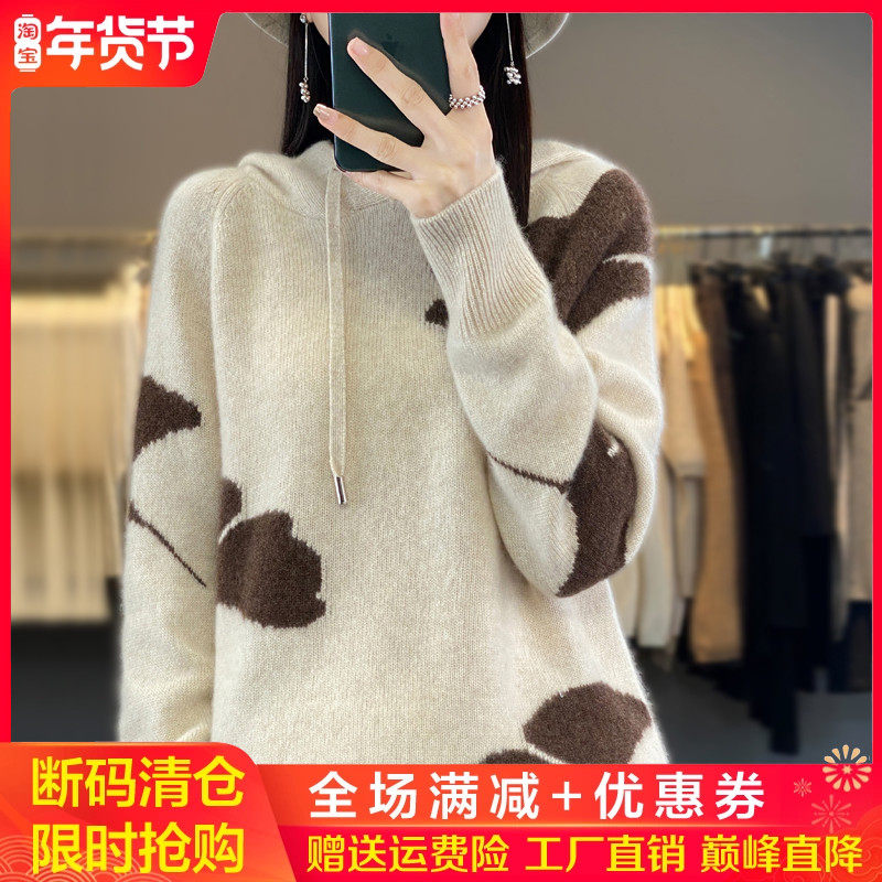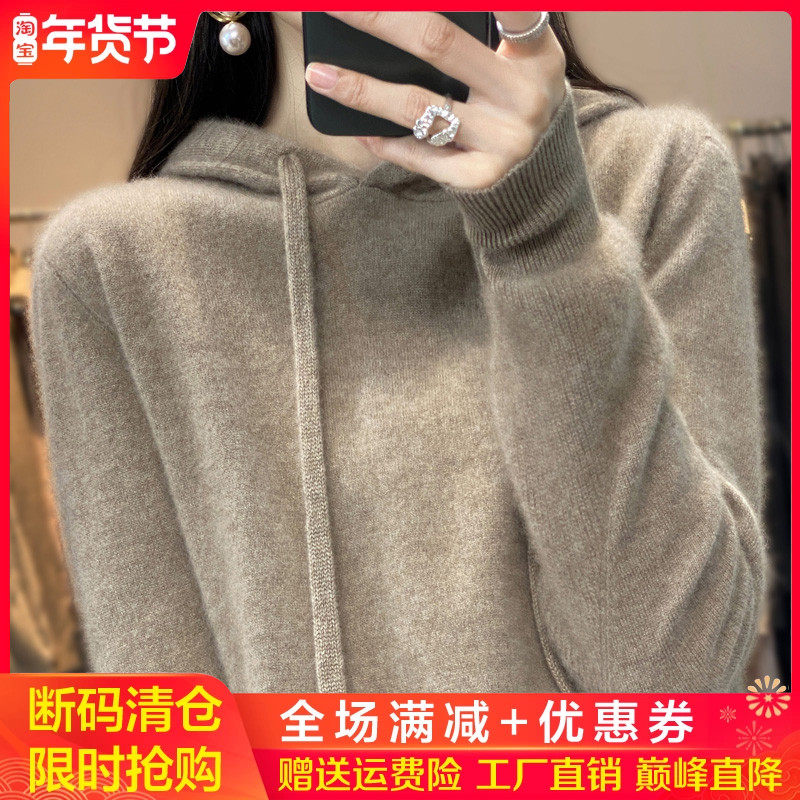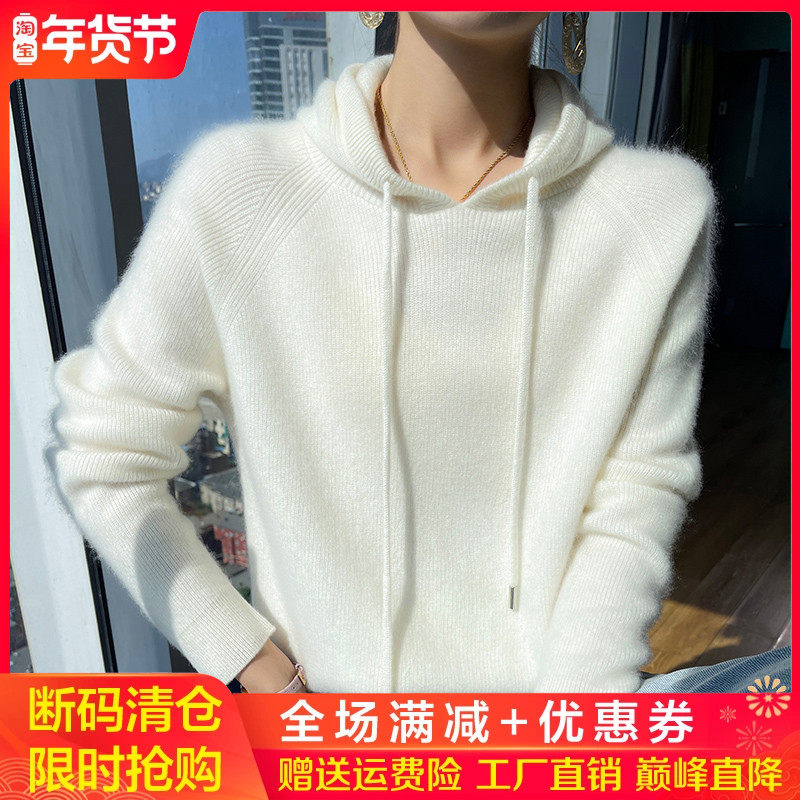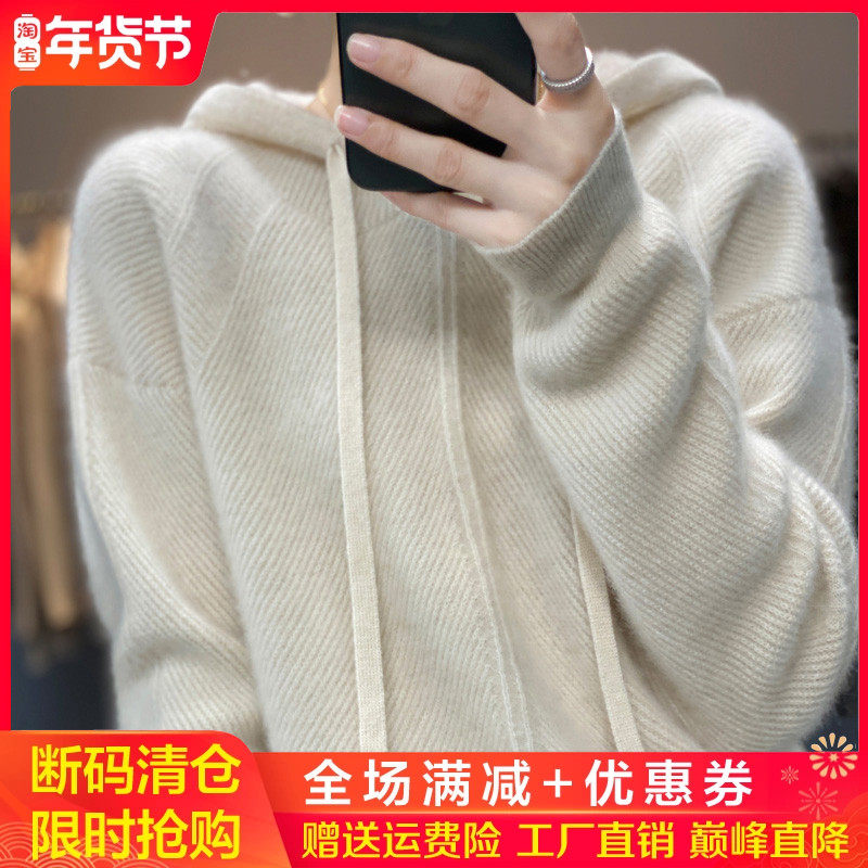 减龄温柔杀!羊绒衫女加厚连帽卫衣宽松针织帽衫显瘦羊绒套头毛衣