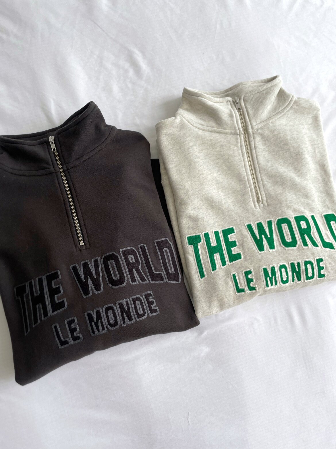 日本潮牌秋冬半开拉链立领字母刺绣宽松廓形女士卫衣针织绒衫长袖