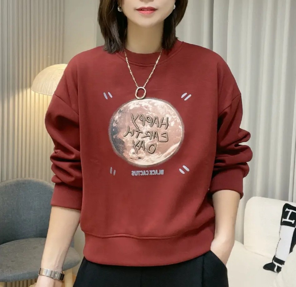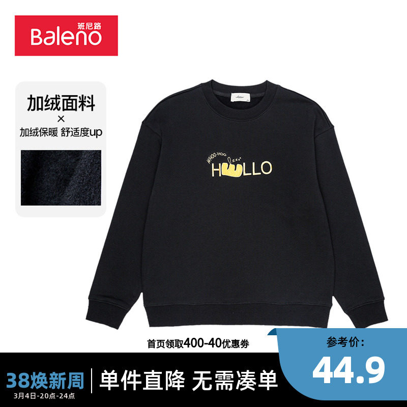 班尼路2023秋冬新款韩版潮流印花圆领卫衣女套头长袖绒衫落肩款