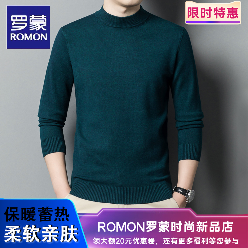 罗蒙羊毛无痕长袖Polo衫卫衣男秋冬季商务休闲百搭打底羊绒衫上衣