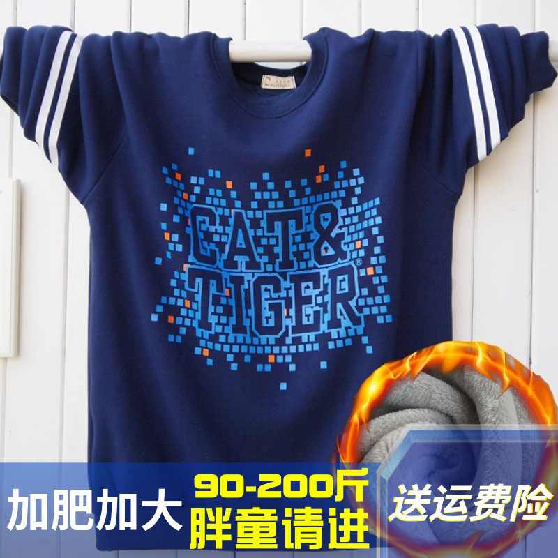 童装胖男童加肥加大码长袖T恤加绒秋冬新款中大童打底绒衫卫衣