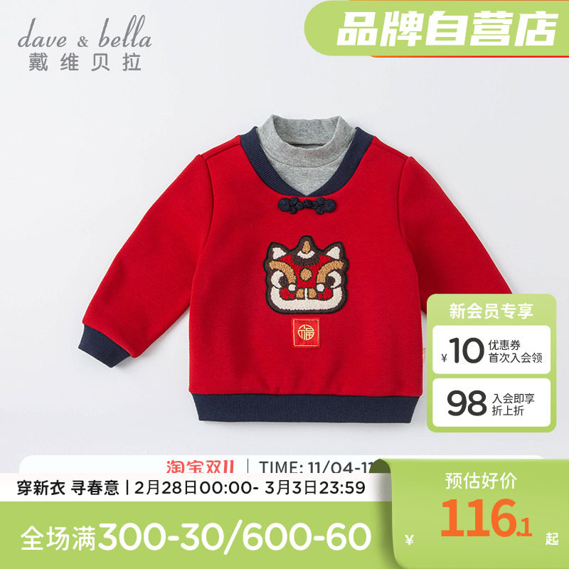 【拜年服】戴维贝拉卫衣绒衫男女童装宝宝中国风节庆新年卫衣上衣