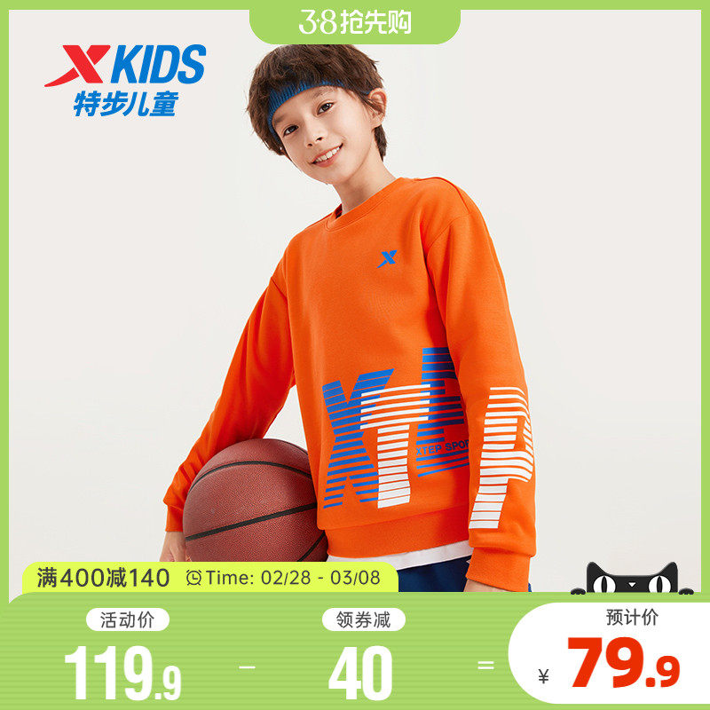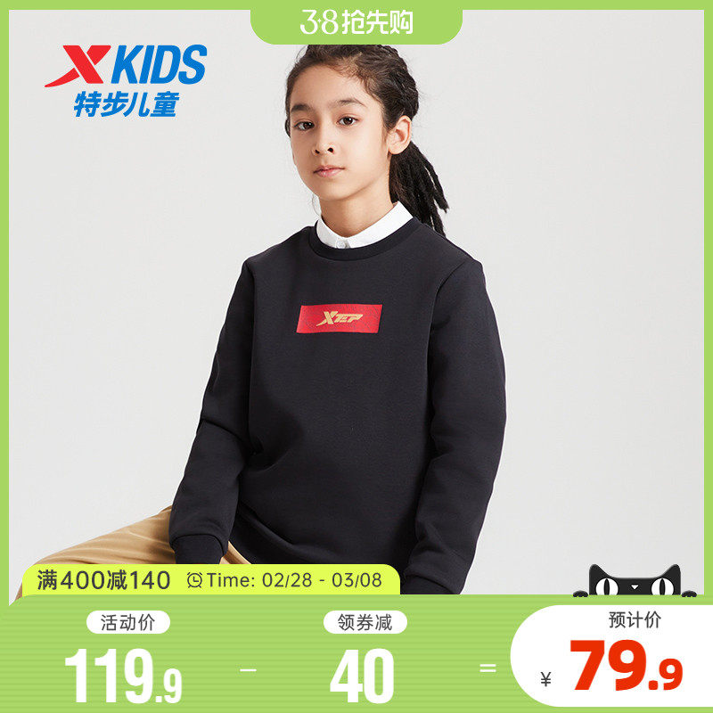 特步童装男童卫衣2024年春秋新款女童春装上衣加绒衫圆领衣服大童