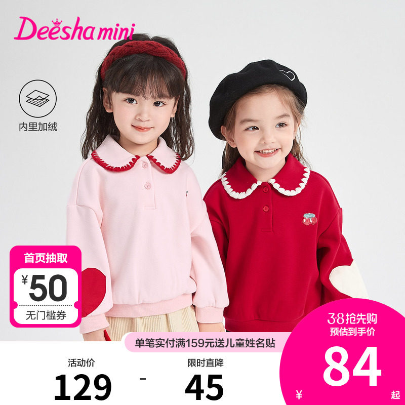笛莎女童加绒卫衣冬装小童女孩绒衫宝宝儿童内搭上衣迪莎官方童装