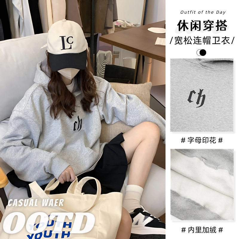 意款2024秋季休闲风日韩休闲绒衫女装套头连帽宽松型女式卫衣2024