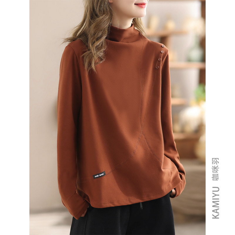 咖咪羽双面德绒半高领打底衫女刺绣卫衣秋冬新款内搭纯色绒衫上衣
