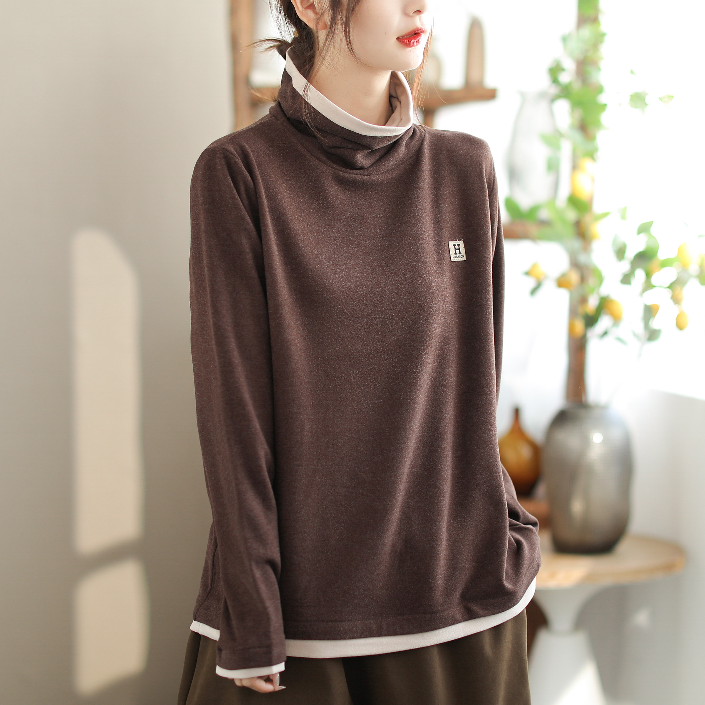 咖咪羽假两件设计款打底绒衫女冬新款气质堆堆领上衣德绒保暖卫衣