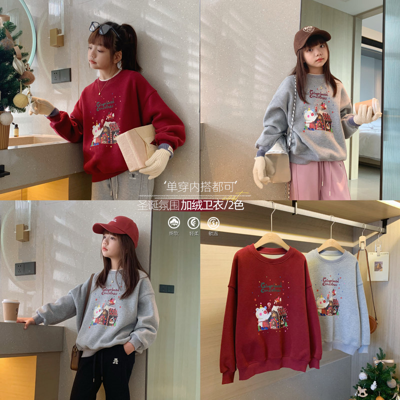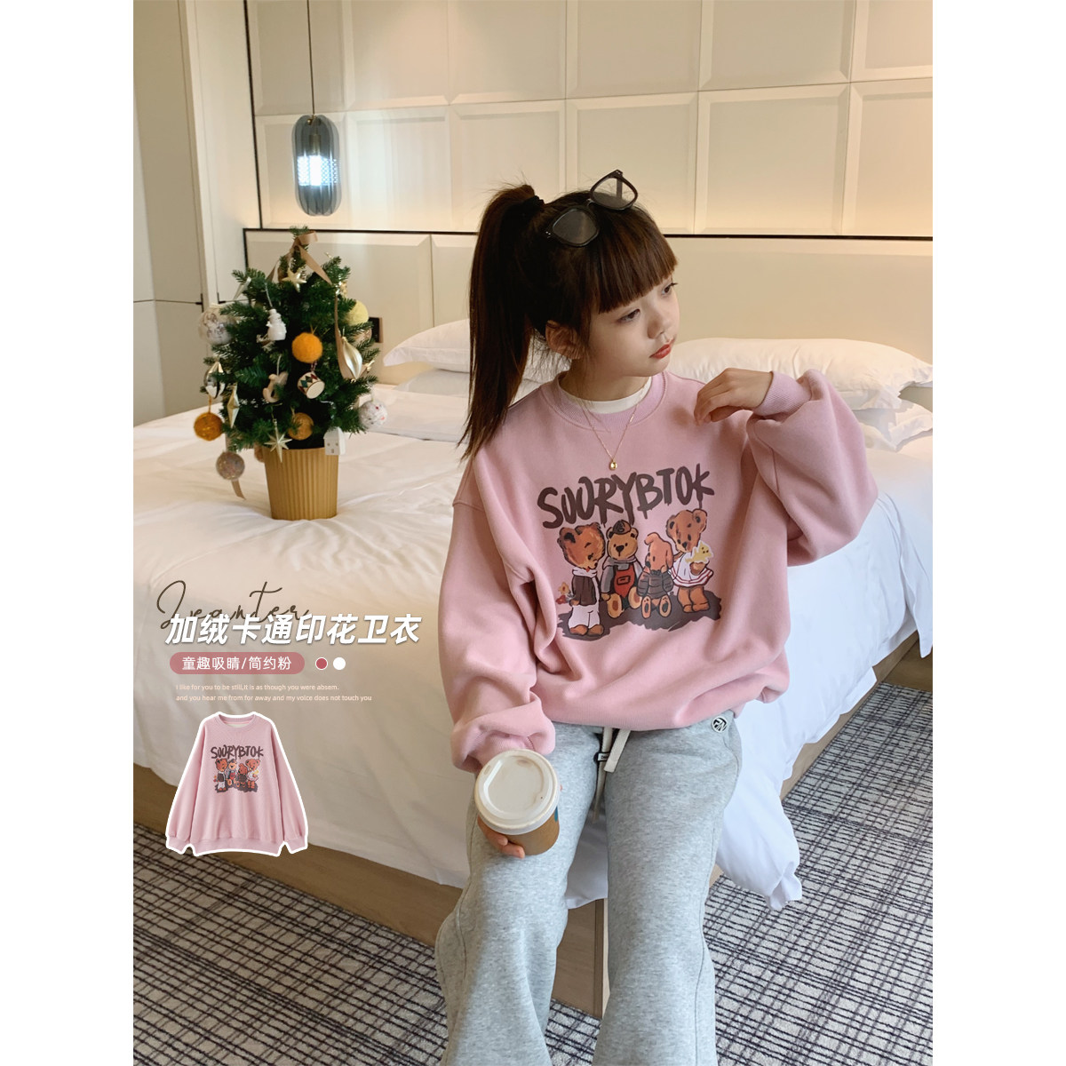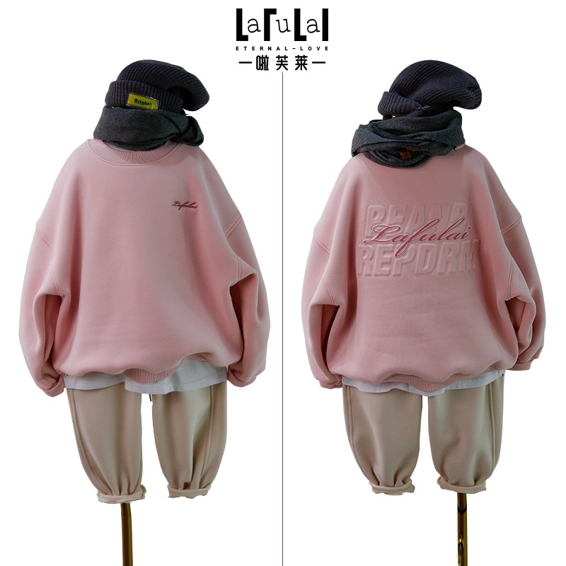 啦芙莱童装2023冬季新款男女中大儿童一体绒卫衣加厚套头绒衫9875