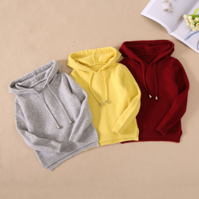 22秋冬新款100%纯羊绒连帽抽绳卫衣女宽松套头毛衣针织羊毛衫上衣