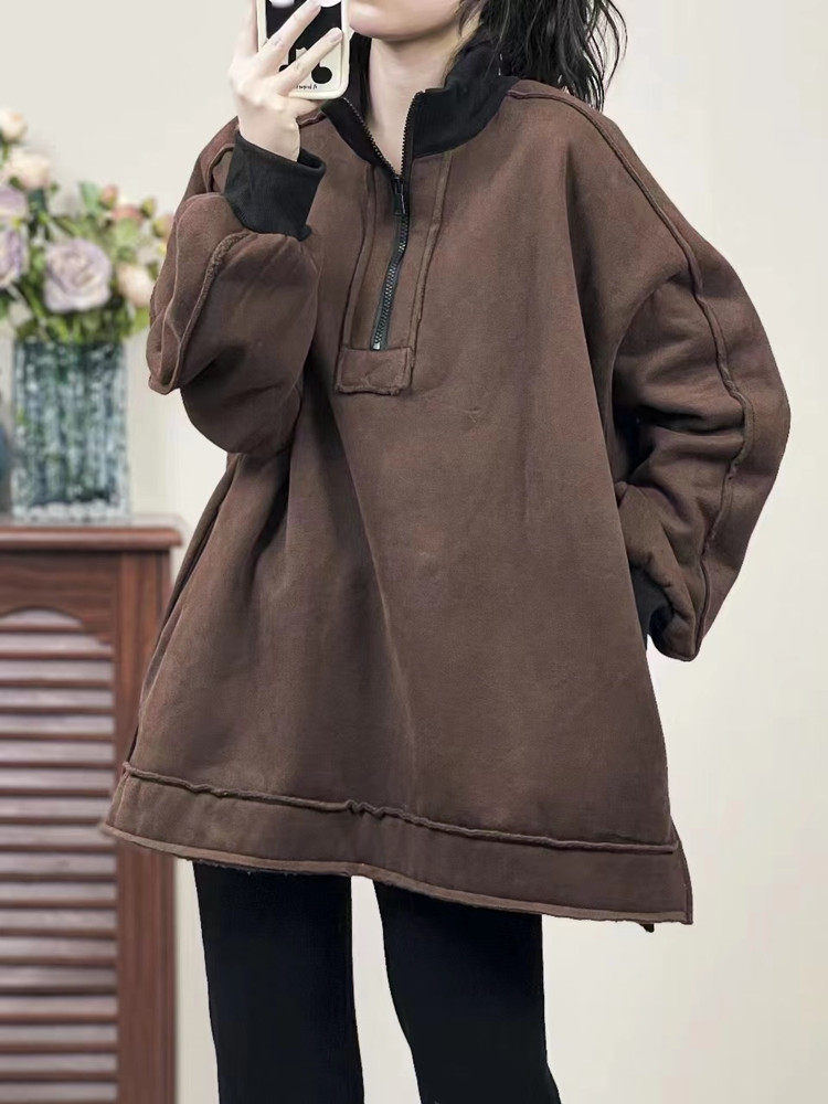 包臀中长款羊羔绒加厚高领卫衣女秋冬新保暖宽松套头长袖上衣绒衫