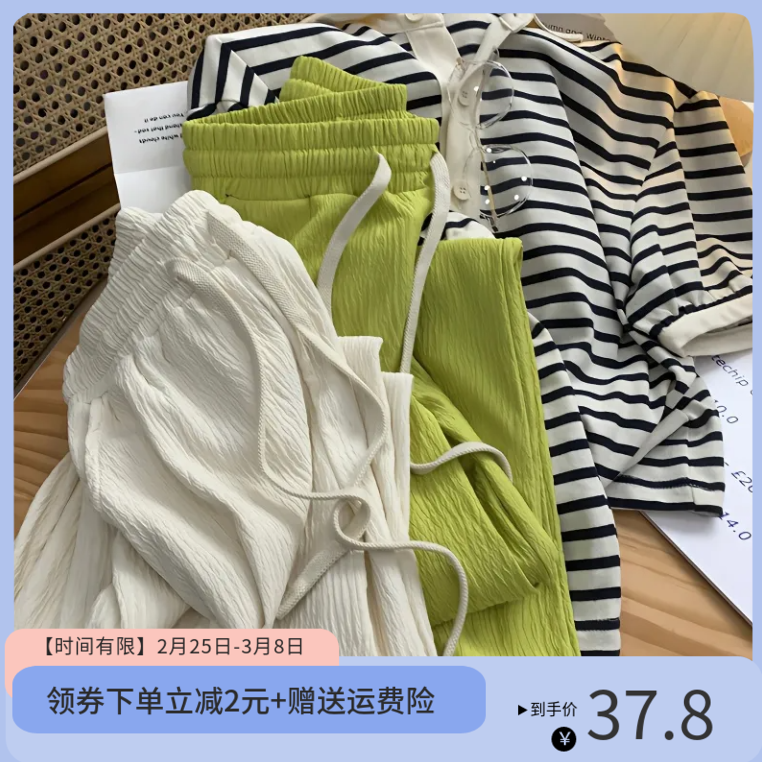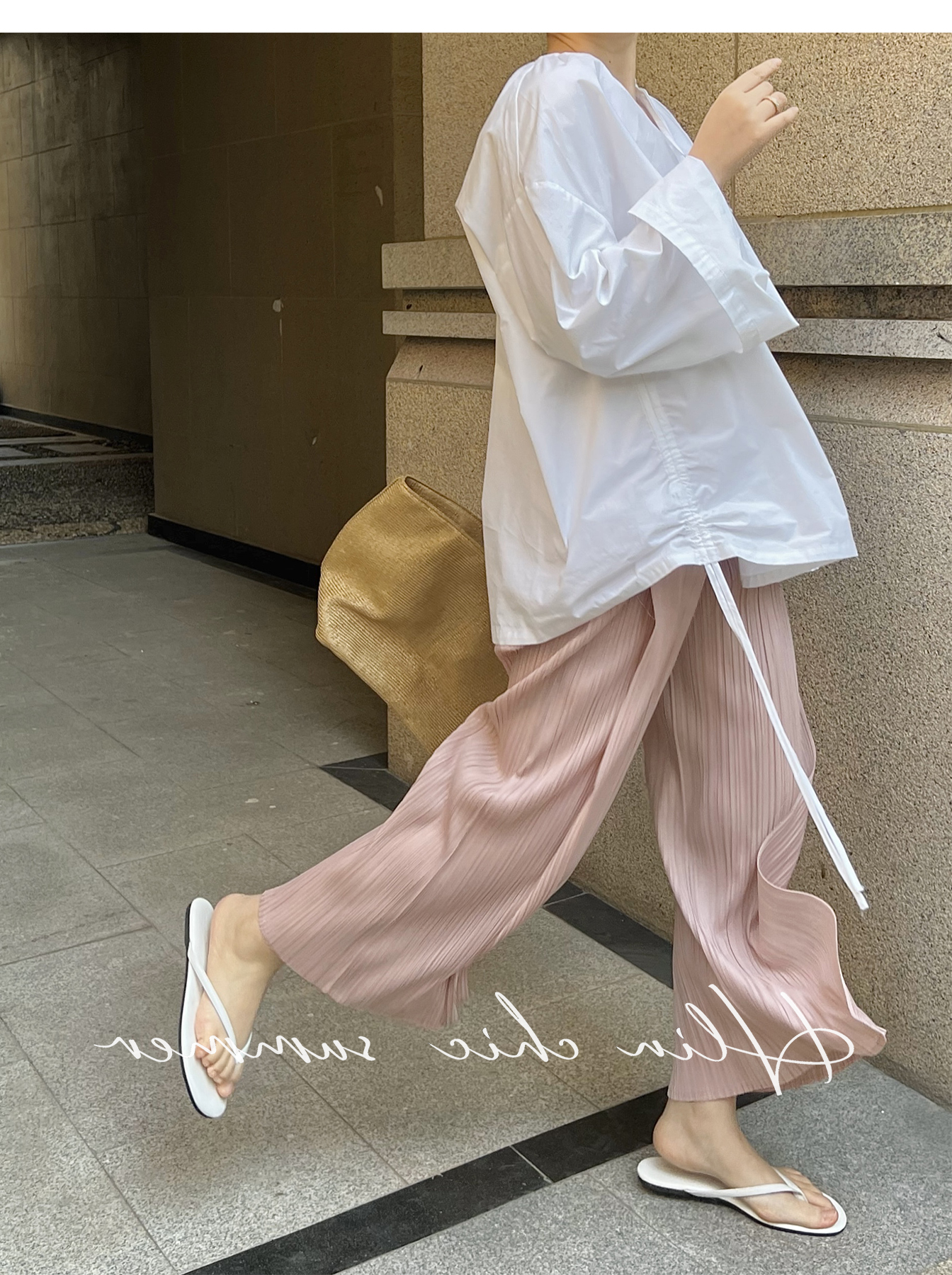 褶皱裤子夏季凉凉抖抖风琴百褶裤女沙滩裤冰丝空调飘飘裤阔腿长裤