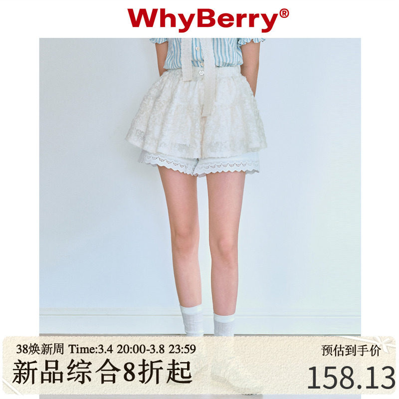 WhyBerry 24SS“叠搭神器”白色蕾丝A字短裙双层褶皱裙裤甜美风