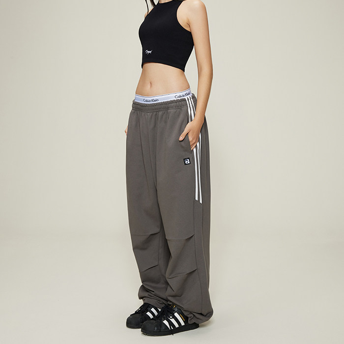 dddLabel新款2024休闲运动裤女三杠褶皱束腿宽松阔腿jazz街舞长裤
