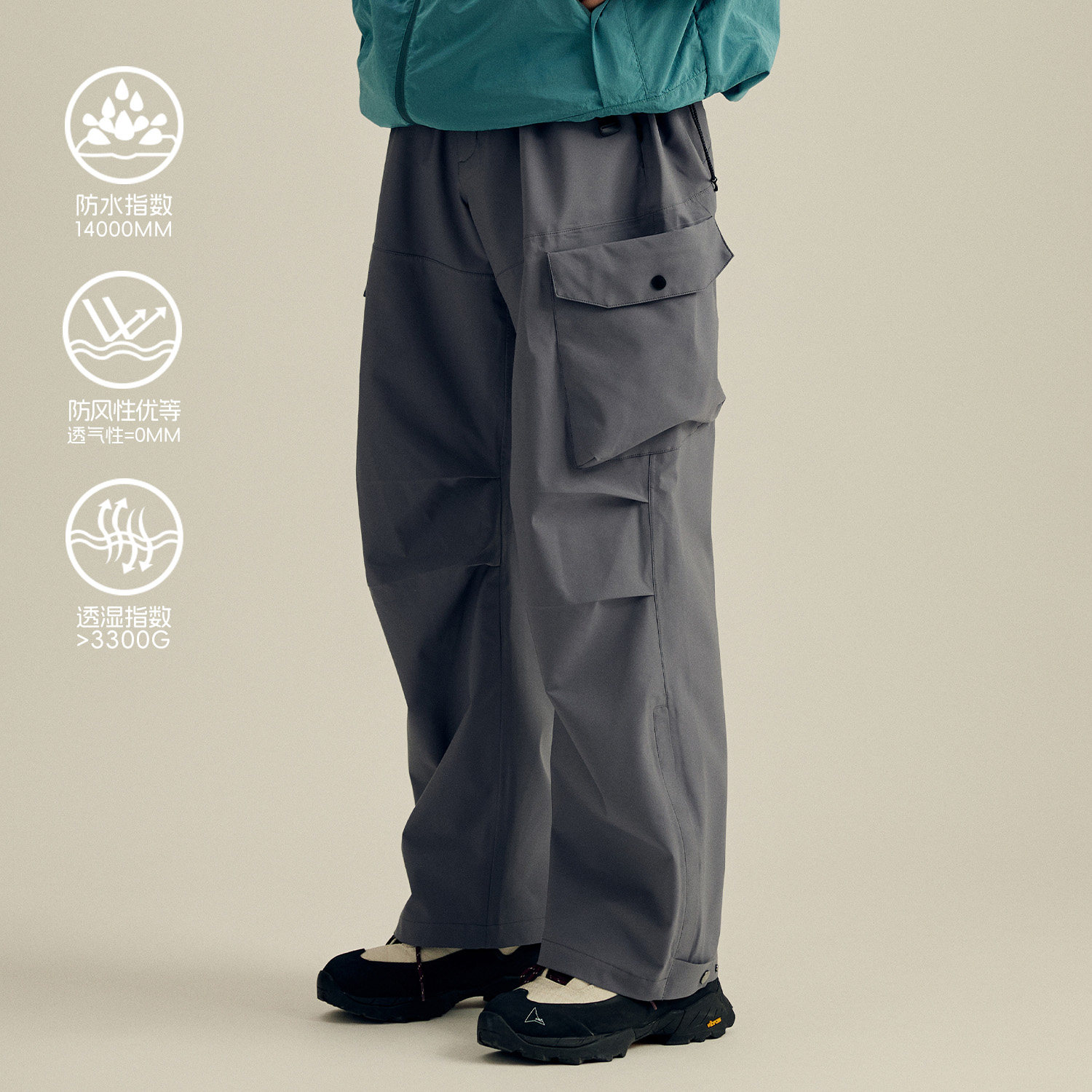 查尔斯桃心 多口袋褶皱冲锋裤男2024春季新款防水户外登山长裤子