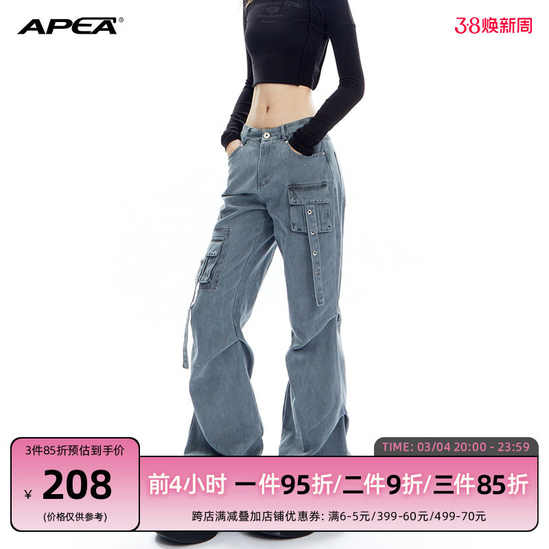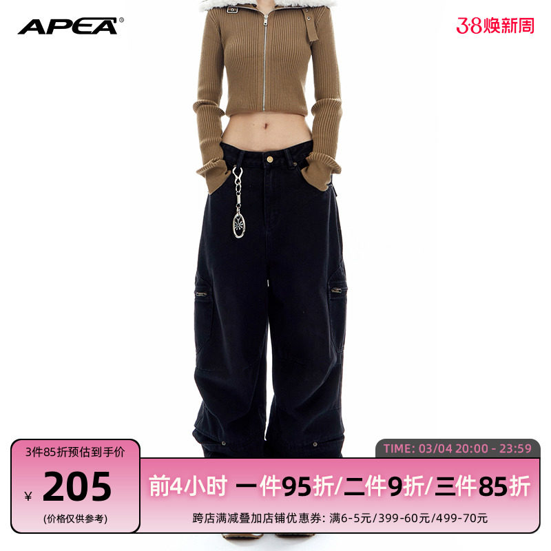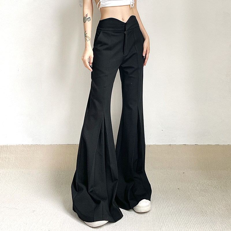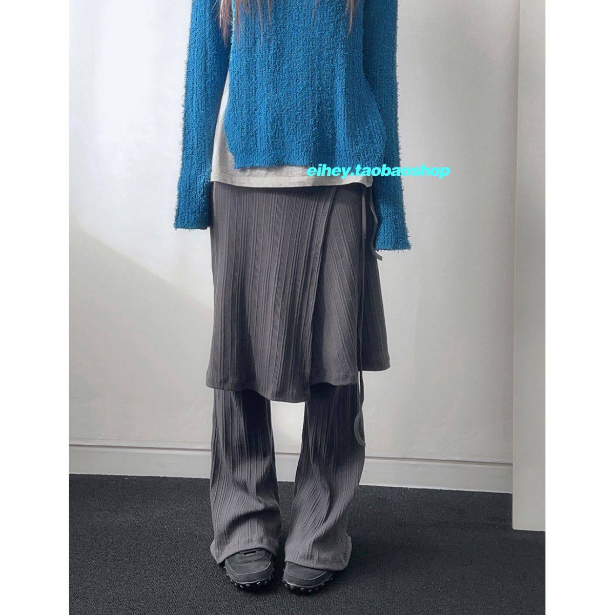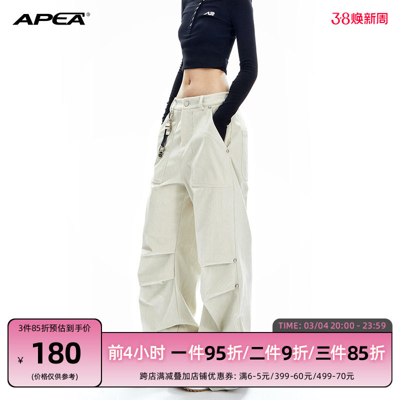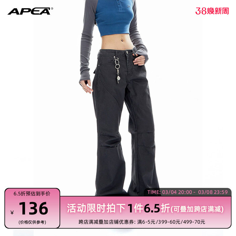 APEA美式复古褶皱解构设计感休闲裤女2023冬季修身显瘦微喇叭裤J