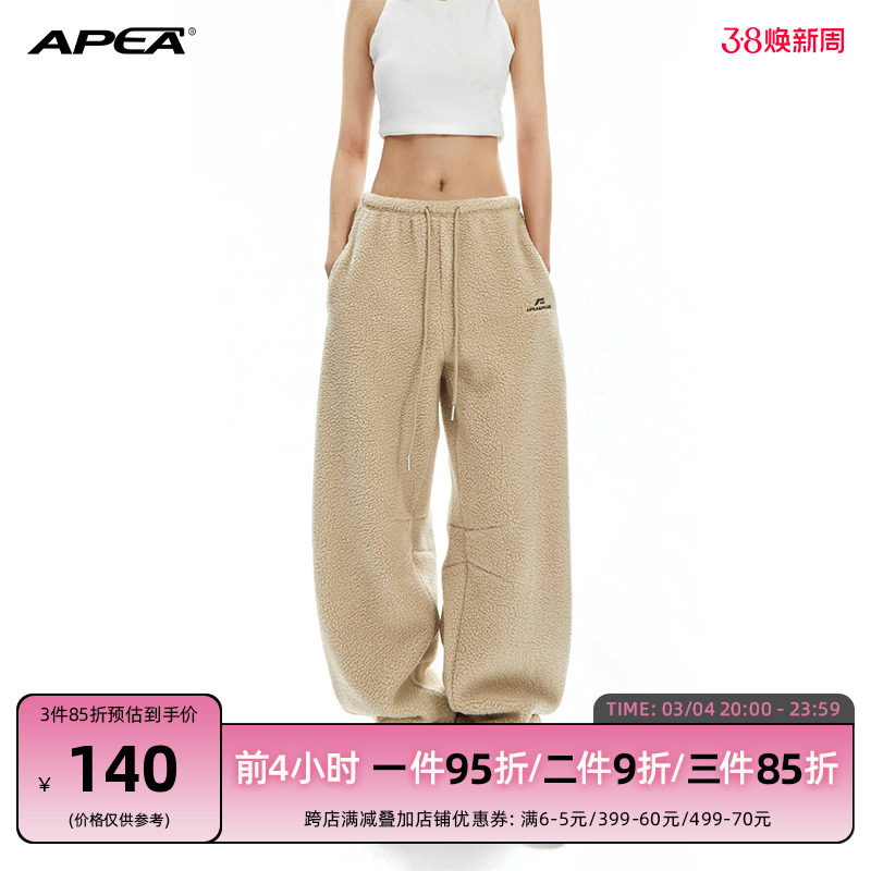 APEA仿羊羔毛双面暖绒中腰褶皱解构廓形卫裤女宽松显瘦休闲束脚裤