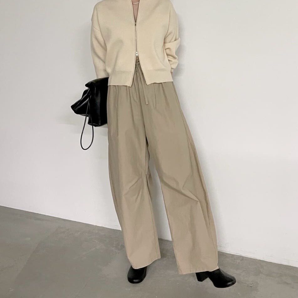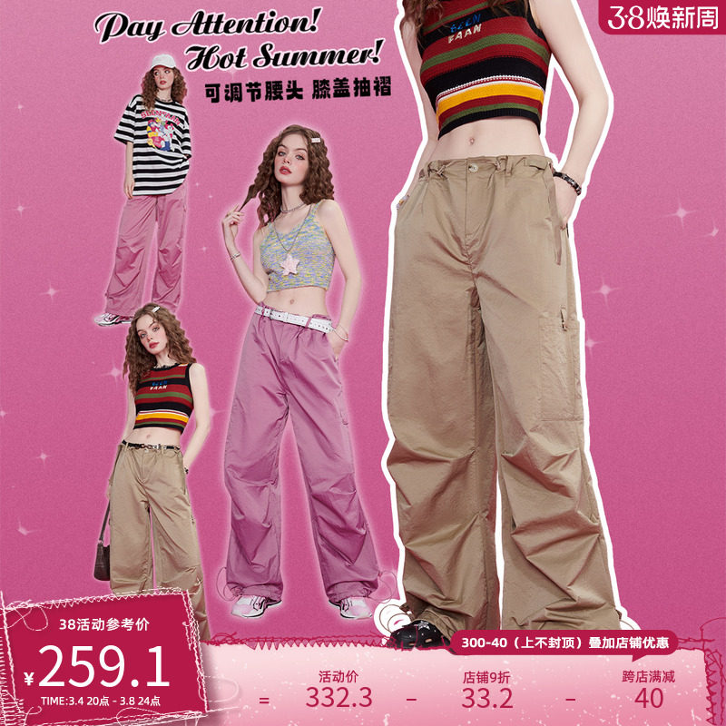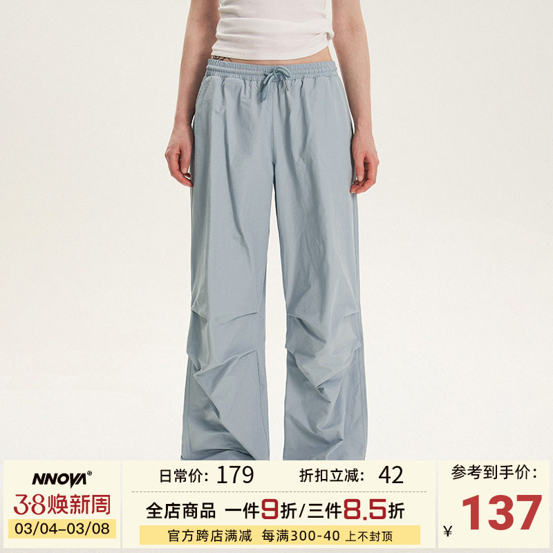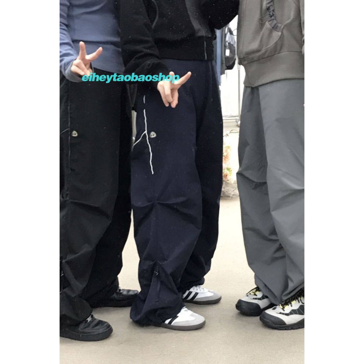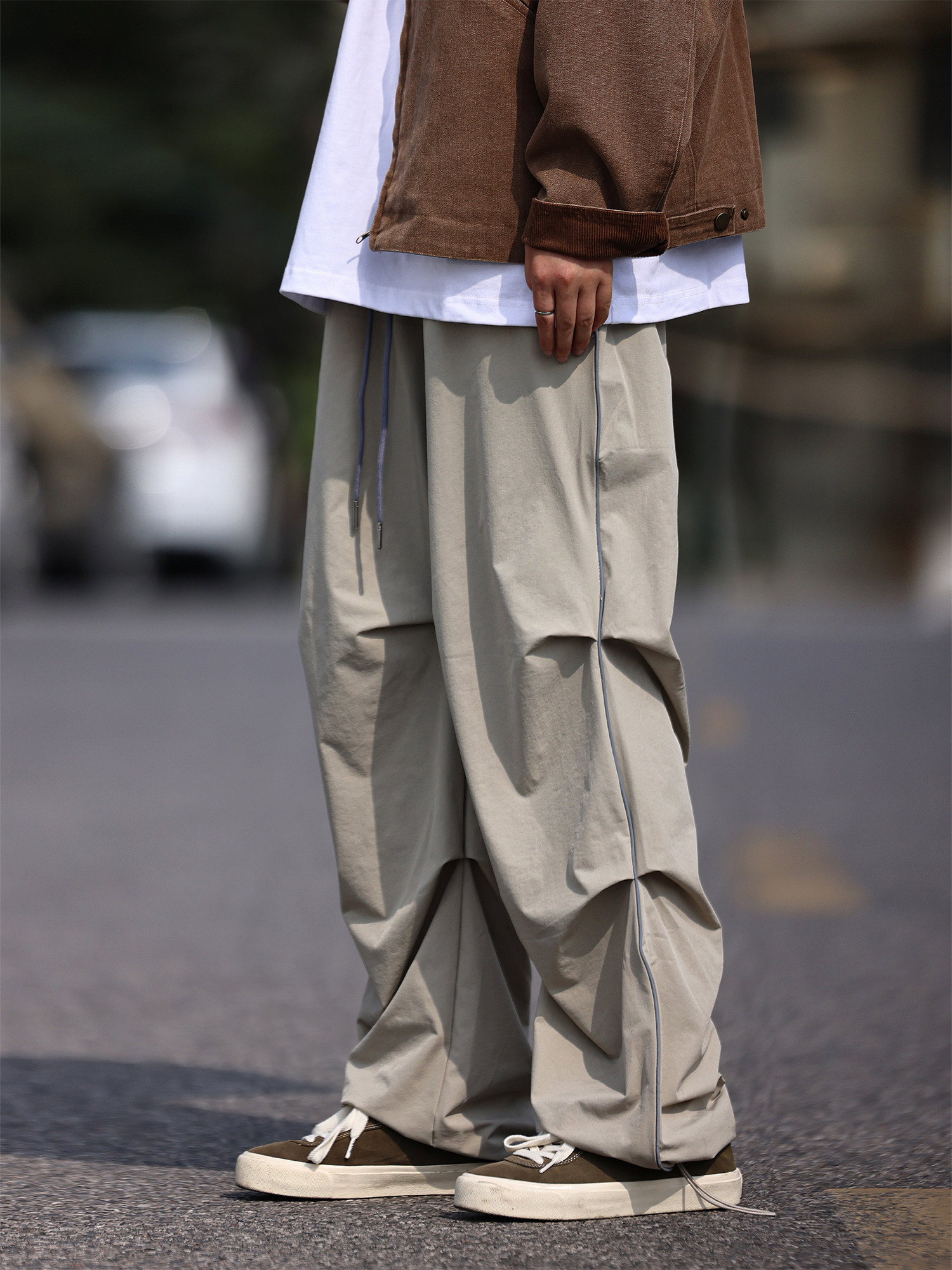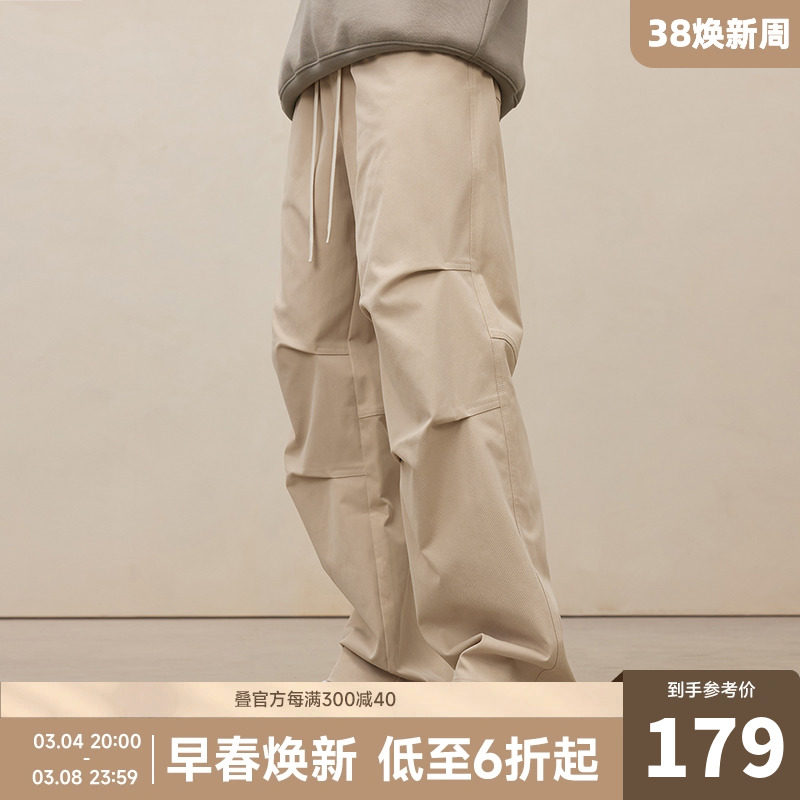 1JINN STUDIO【明星同款】 美式复古松紧腰伞裤褶皱抽绳工装长裤